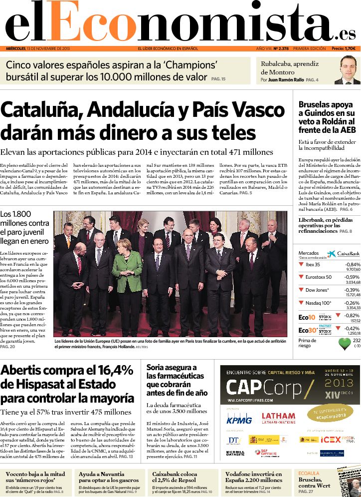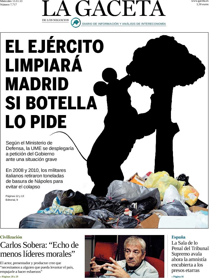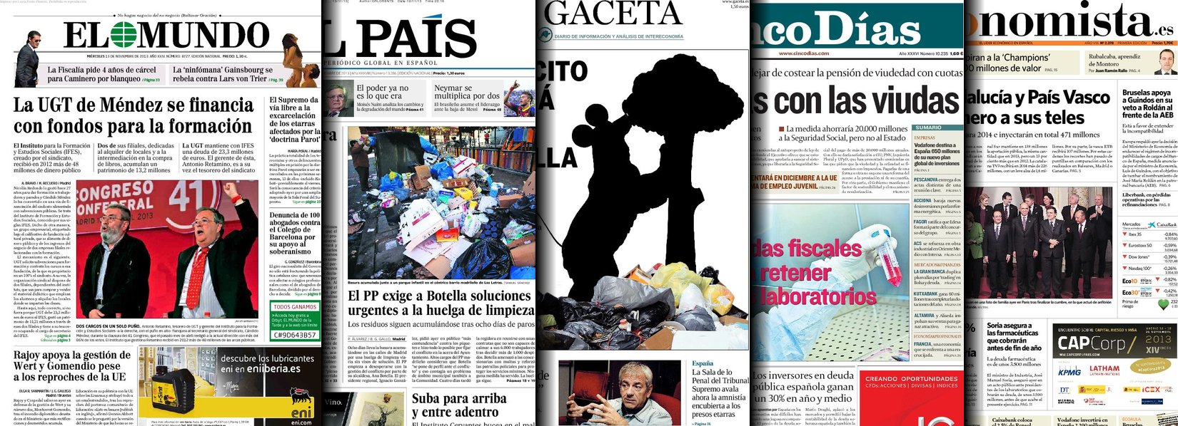 Portadas de los diarios El Mundo, El País, ABC, La Razón, La Vanguardia, La Gaceta, El Periódico, Cinco Días, El Economista, Expansión, Marca, As, Mundo Deportivo y Sport.
