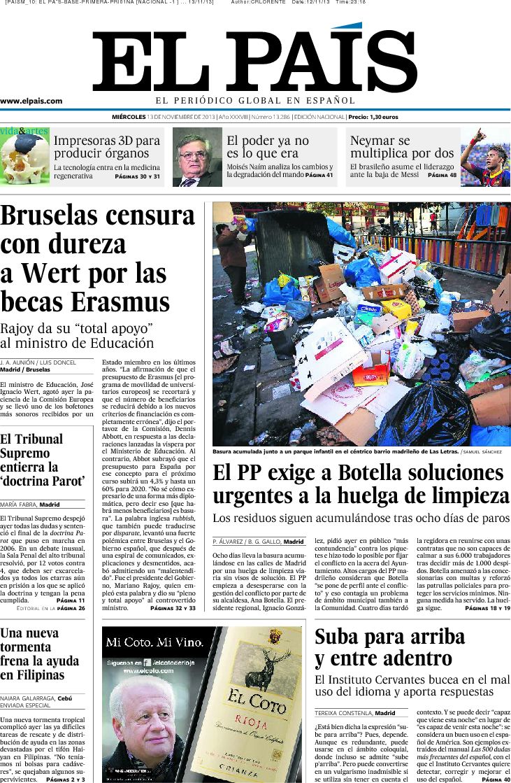 "Bruselas censura con dureza a Wert por las becas Erasmus"