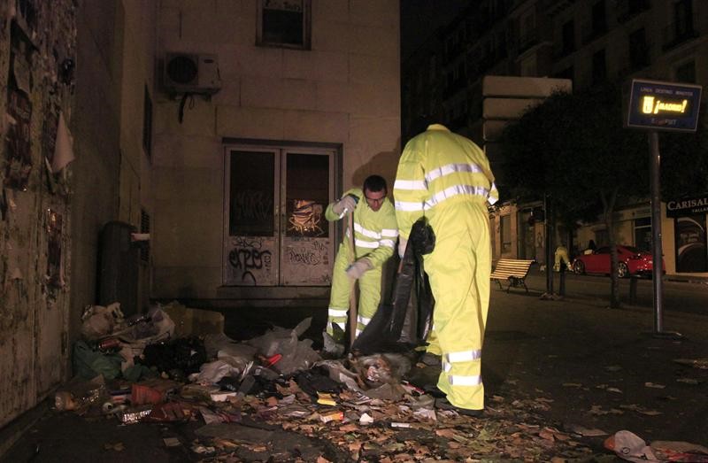 Los trabajadores de la empresa pública Tragsa que han asumido esta madrugada las tareas de limpieza viaria de la ciudad de Madrid han recogido ya unas 60 toneladas de residuos en un primer turno de trabajo, que está transcurriendo con normalidad y sin ningún tipo de incidencia.
