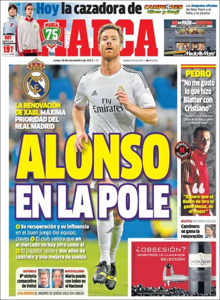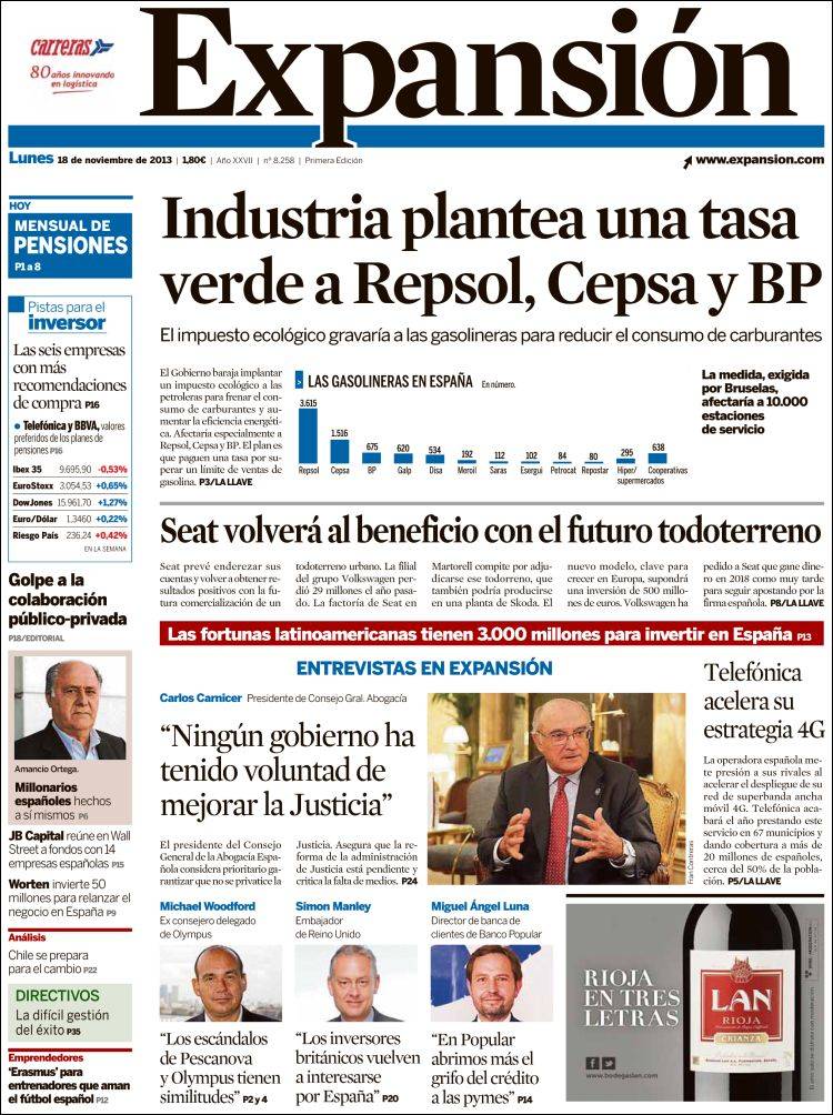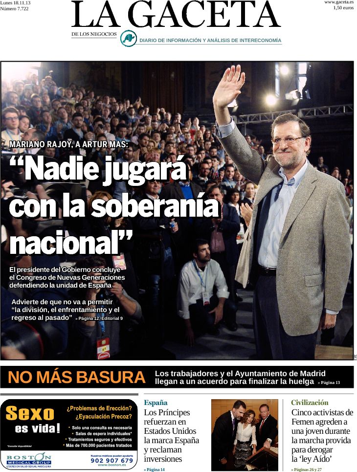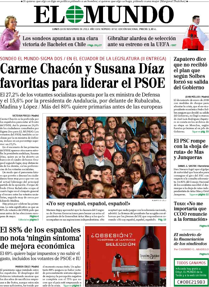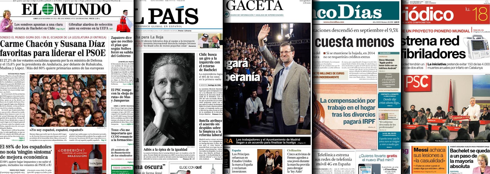 Portadas de los diarios El Mundo, El País, ABC, La Razón, La Vanguardia, La Gaceta, El Periódico, Cinco Días, El Economista, Expansión, Marca, As, Mundo Deportivo y Sport.