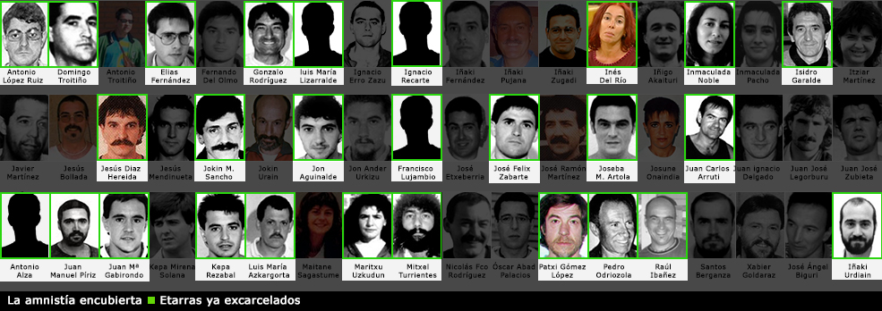 También están Javier María Goldaraz -condenado por el secuestro del industrial Adolfo Villoslada-; Miren Maitane Sagastume, Joaquín Urain Larrañaga -condenado a 315 años por la muerte de tres militares- y José Ignacio Etxeverria Pascual.
