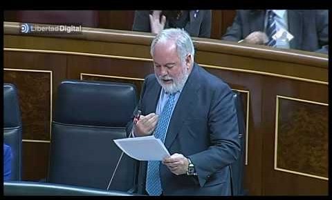 El ministro de Medio Ambiente, Miguel Arias Cañete, responde a una pregunta de la diputada del PSOE Laura Seara sobre cómo piensa el Gobierno garantizar a los afectados del resarcimiento de los daños de todo tipo ocasionados por el Prestige. En el debate se enzarzaron por las responsabilidades del Gobierno de Aznar en la catástrofe.