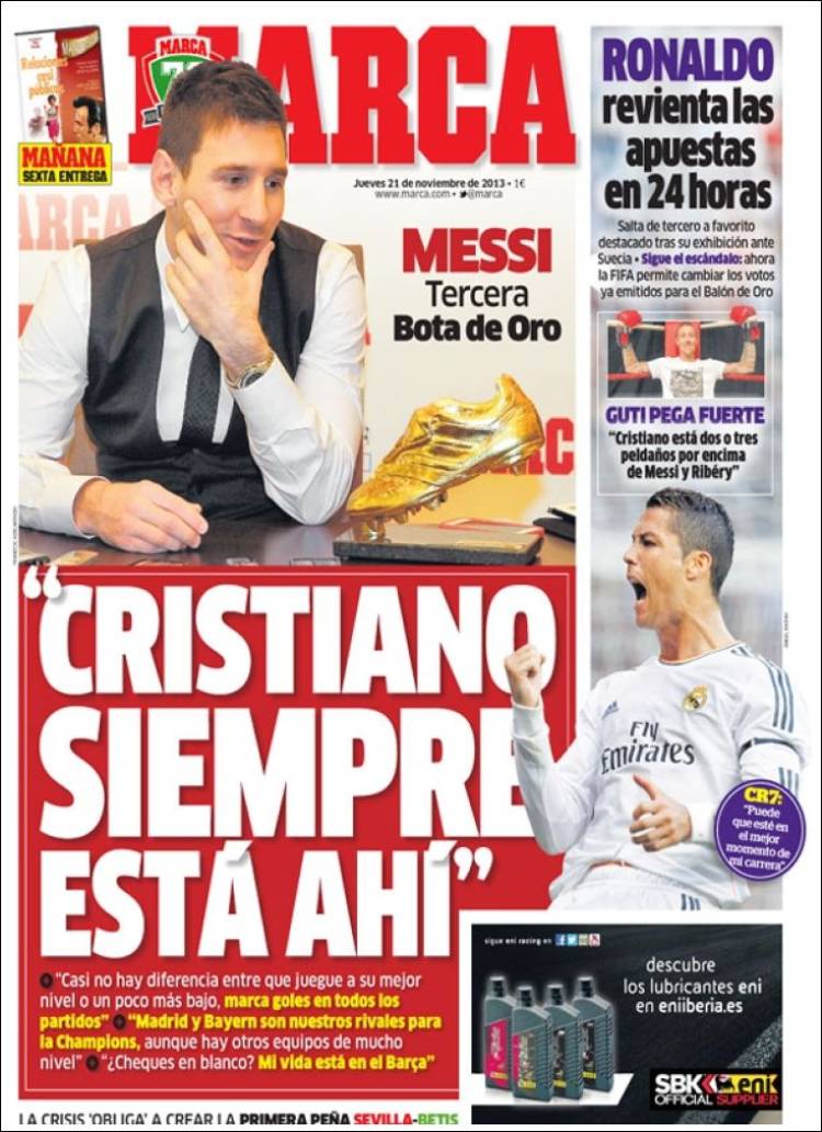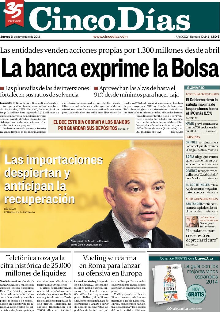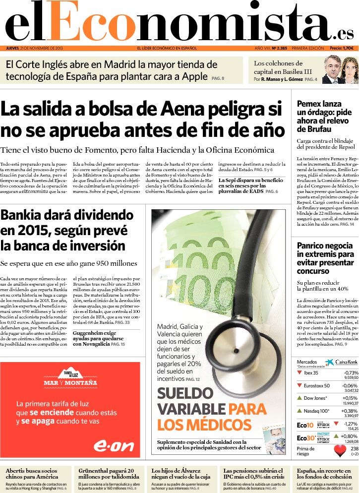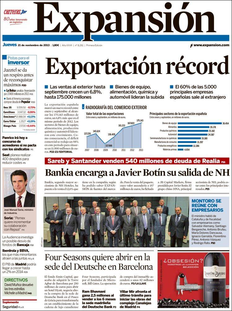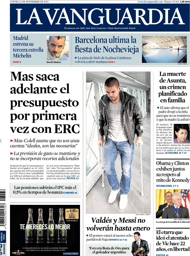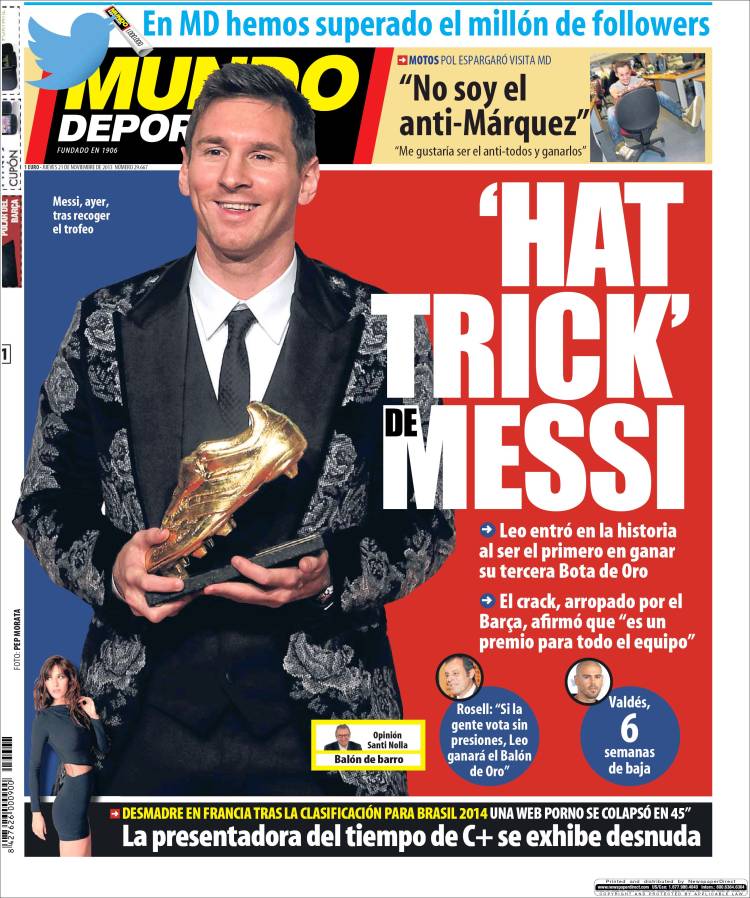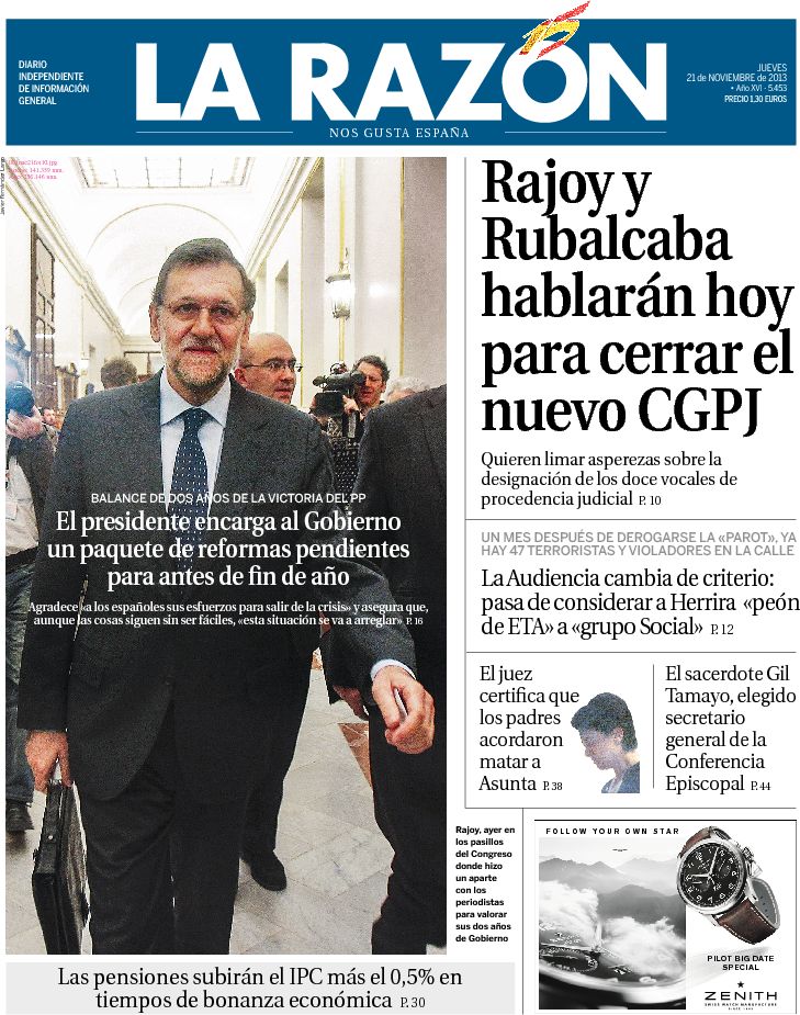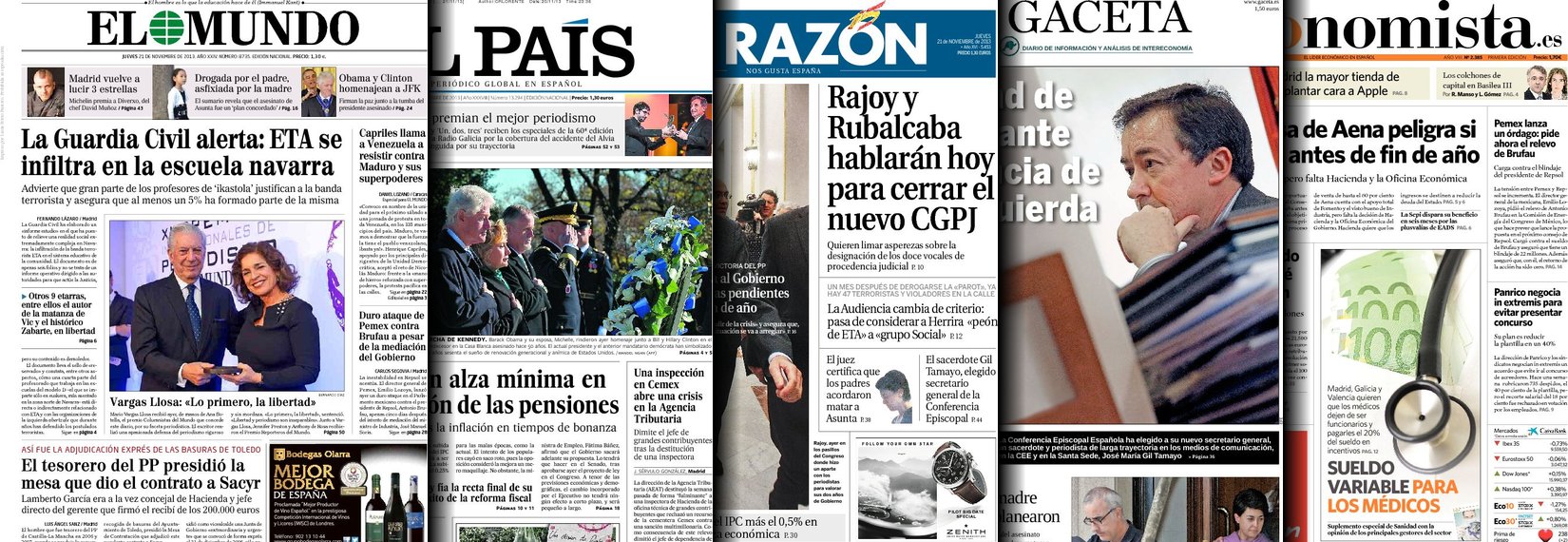 Portadas de los diarios El Mundo, El País, ABC, La Razón, La Vanguardia, La Gaceta, El Periódico, Cinco Días, El Economista, Expansión, Marca, As, Mundo Deportivo y Sport.