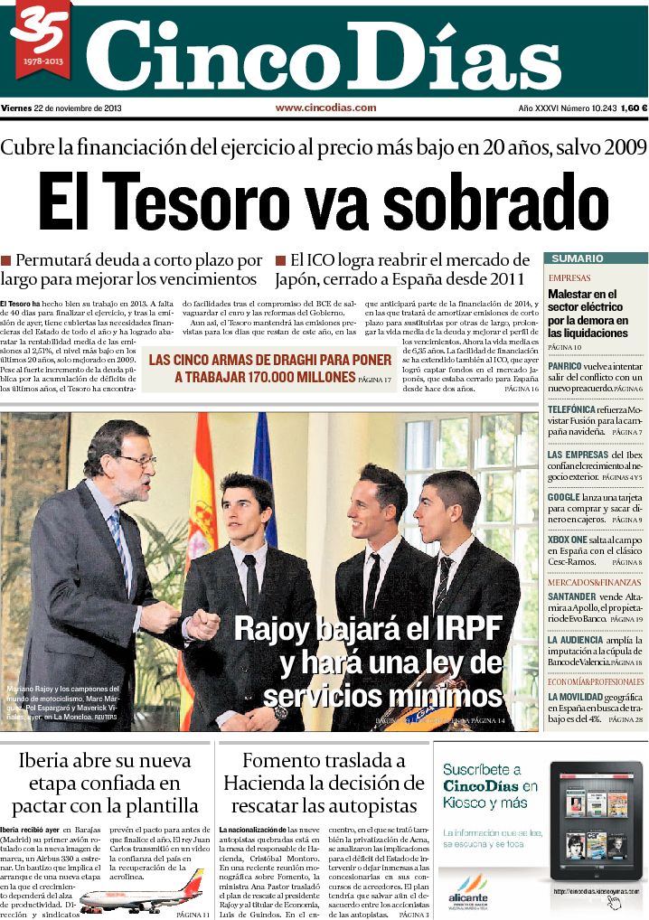 "Rajoy anuncia una rebaja del IRPF que se aplicará el 2015"