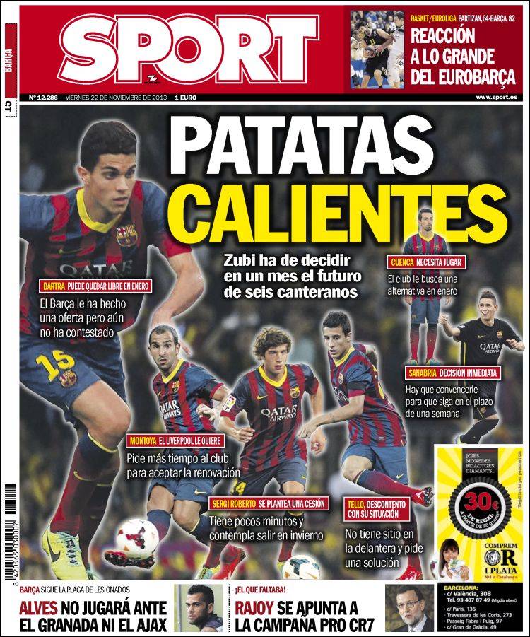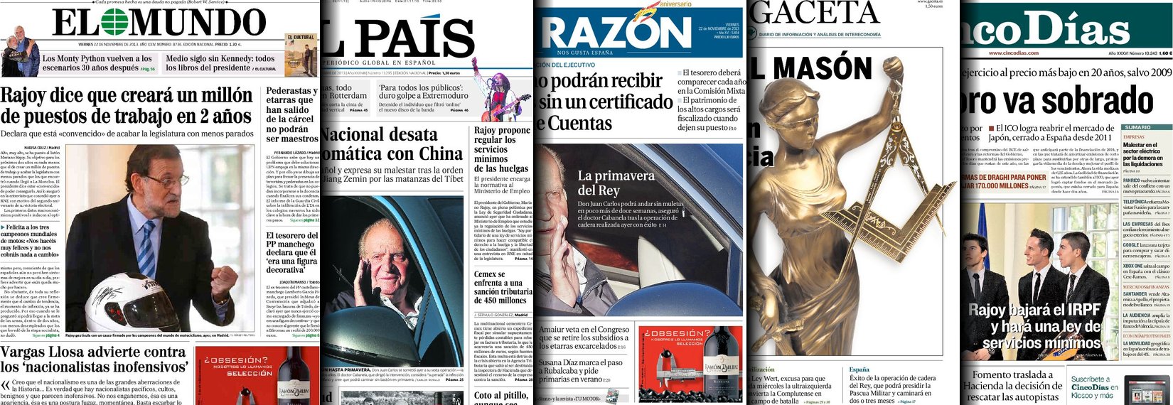 Portadas de los diarios El Mundo, El País, ABC, La Razón, La Vanguardia, La Gaceta, El Periódico, Cinco Días, El Economista, Expansión, Marca, As, Mundo Deportivo y Sport.