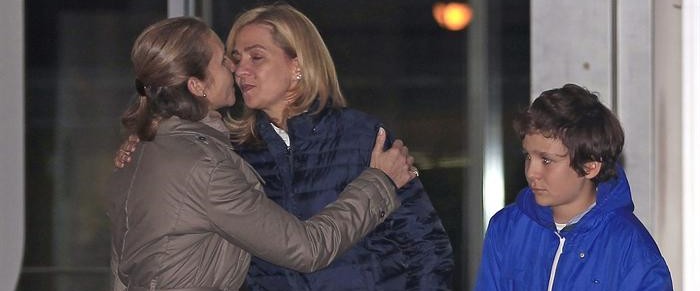 La infanta Elena fue la primera en llegar al hospital, a las 18:20 horas, acompañada por su hijo mayor, y treinta minutos después lo hizo doña Cristina en solitario.