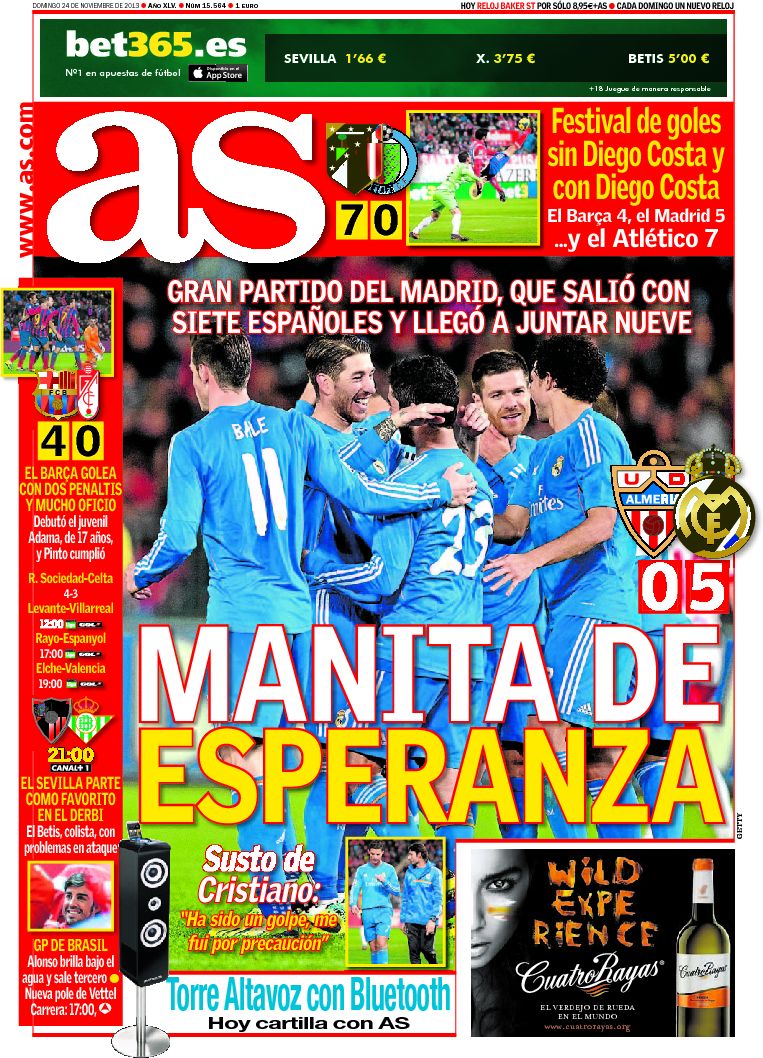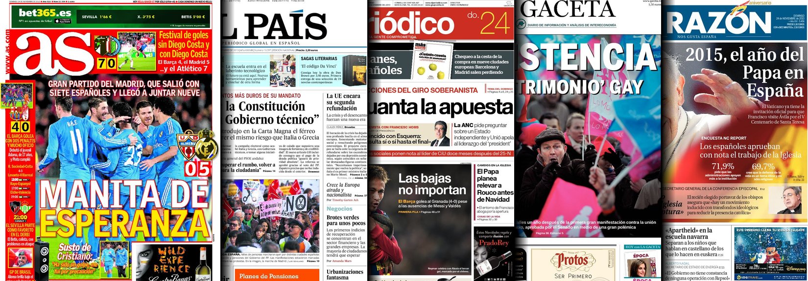 Portadas de los diarios El País, La Gaceta, ABC, La Razón, As, El Periódico y La Vanguardia.