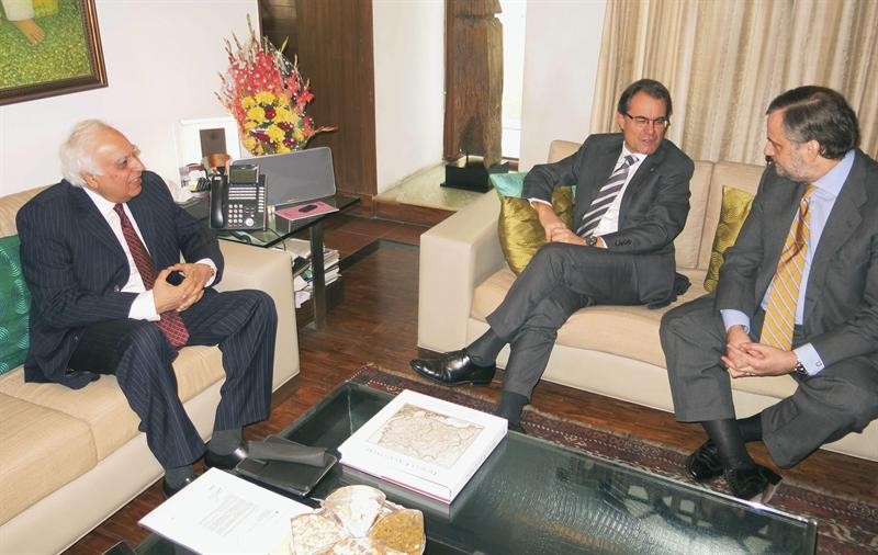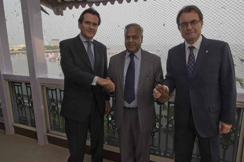 Mas con una de las reuniones que consiguió cerrar: la celebrada con el ministro indio de Telecomunicaciones. Junto a él, el embajador español, Gustavo de Arístegui.