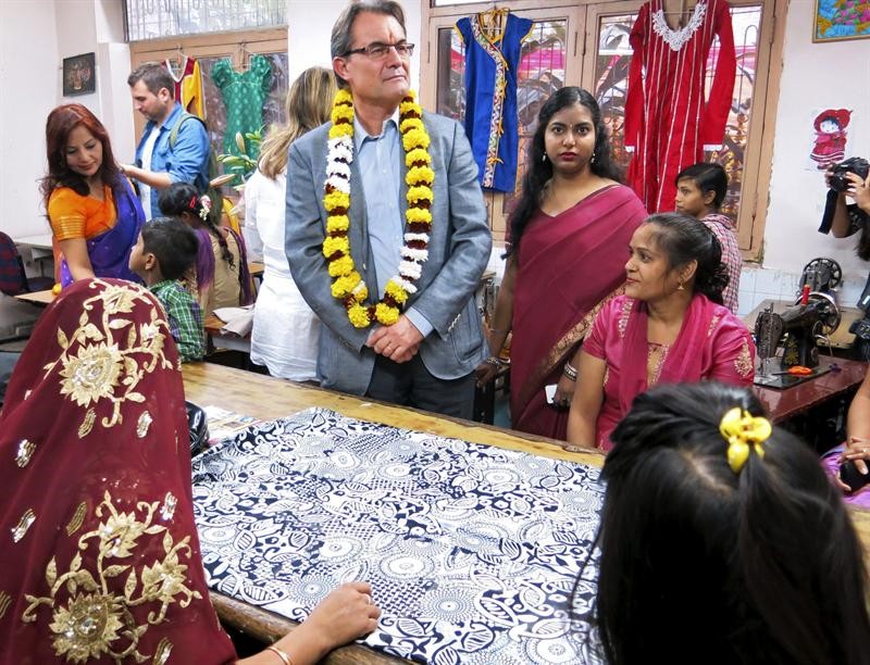 El presidente de la Generalidad de Cataluña, Artur Mas, durante su visita al proyecto humanitario "streets of India", destinado a dar apoyo a niños y mujeres de bajos recursos en Nueva Delhi