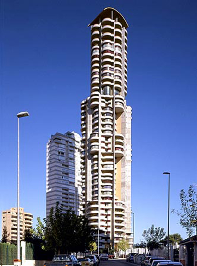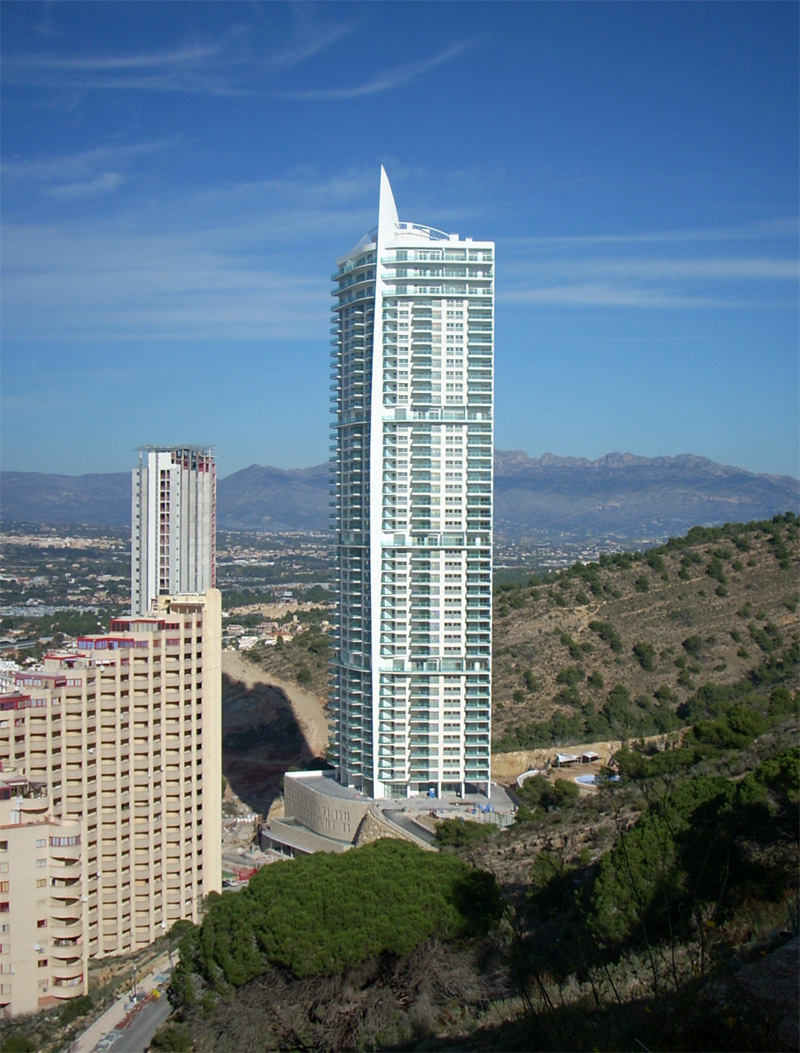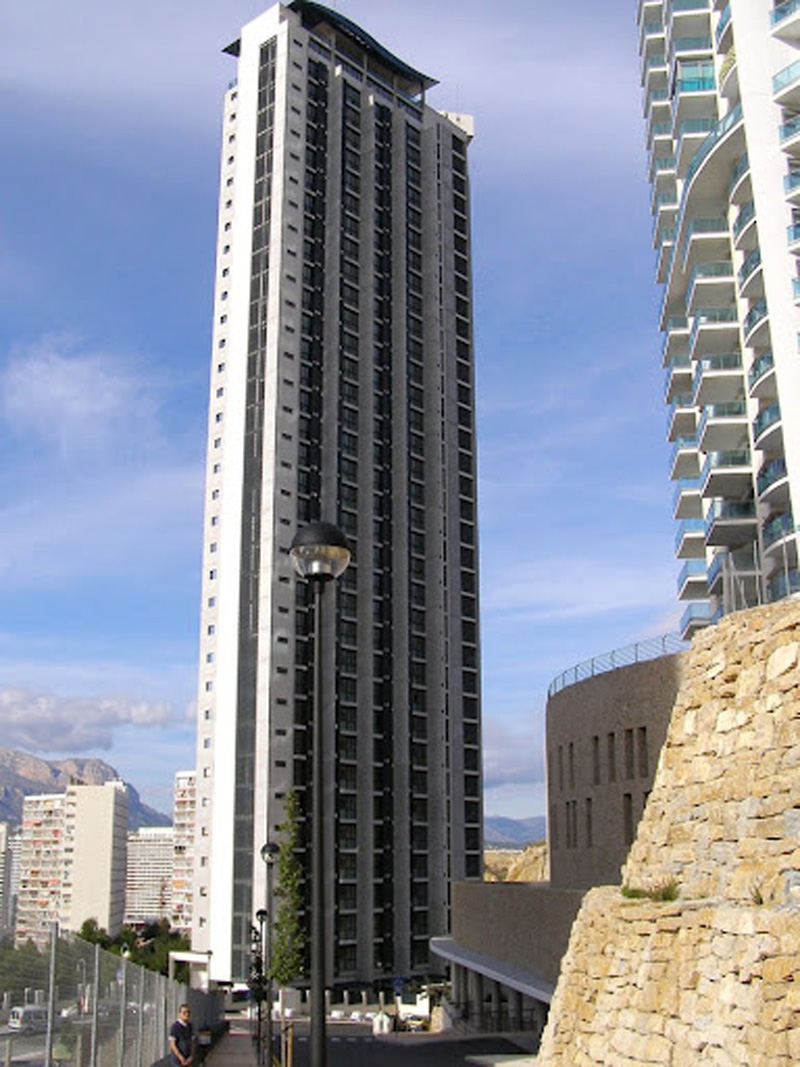 El Edificio Neguri Gane de Benidorm se coloca entre los más altos del panorama español con 148 metros y 43 plantas. Inaugurado en 2002.