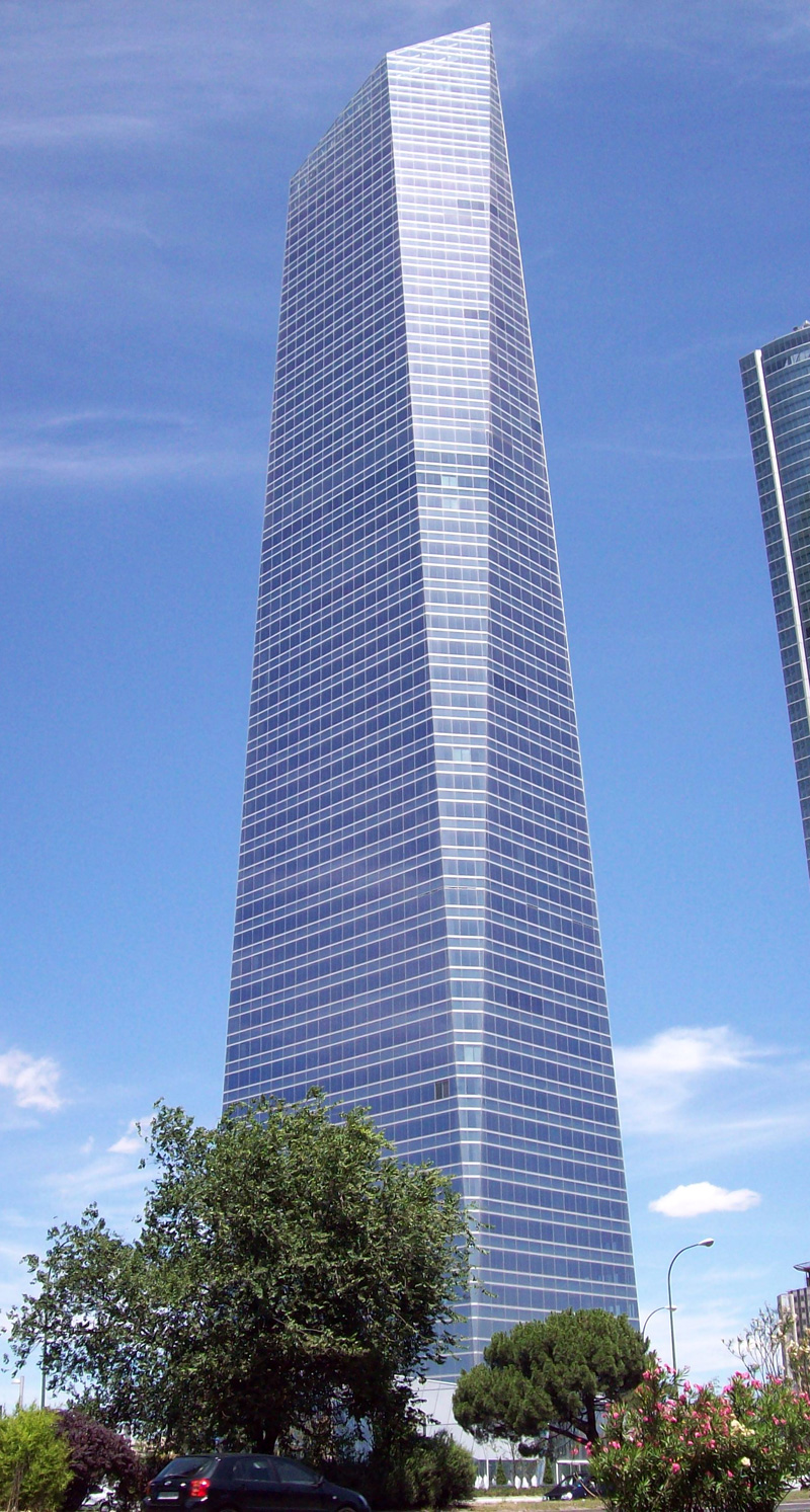 La Torre de Cristal, con 249 metros y 50 plantas, es el edificio más alto de España. Fue inaugurado en el año 2008 y forma parte del complejo de oficinas llamado CTBA en Madrid.