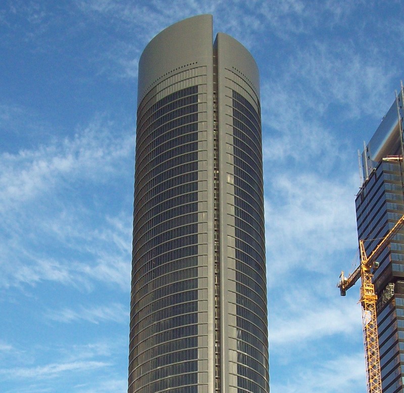 La Torre Espacio, con 224,2 y 56 plantas, ocupa el cuarto lugar de la lista. Inaugurada en 2008 es otra de las torres del complejo CTBA de Madrid.