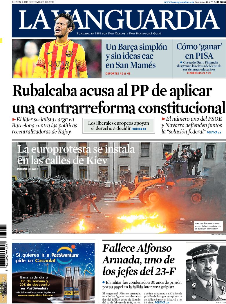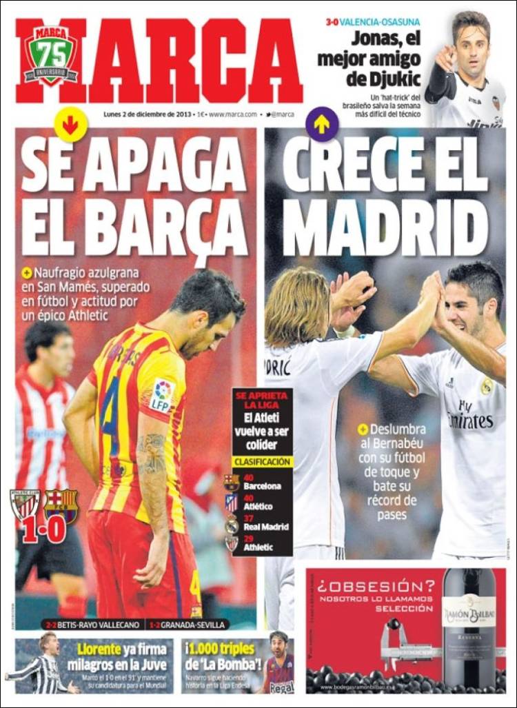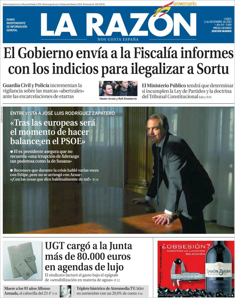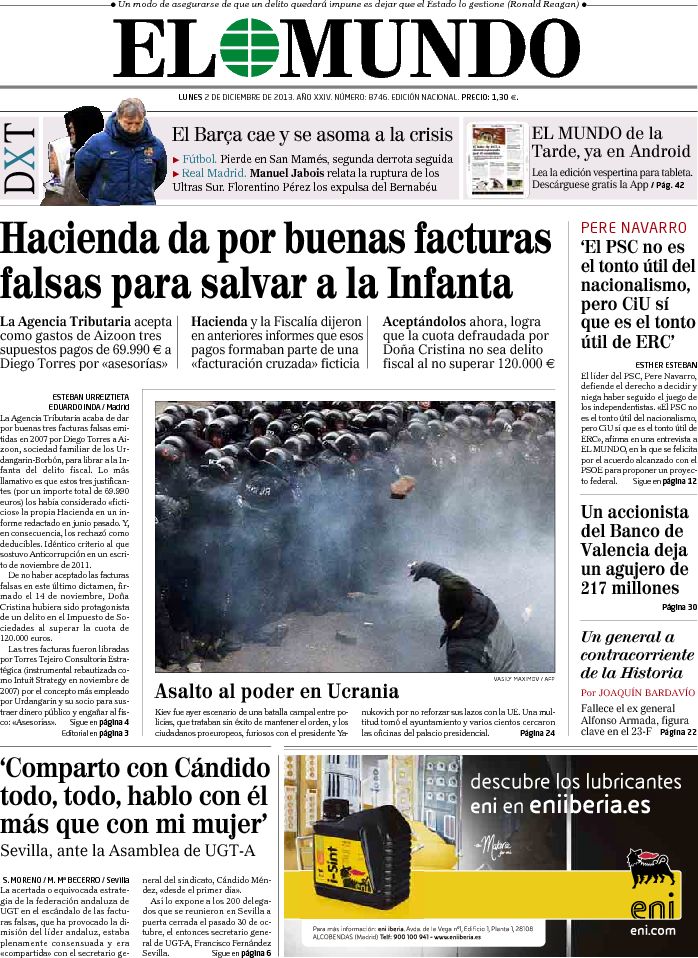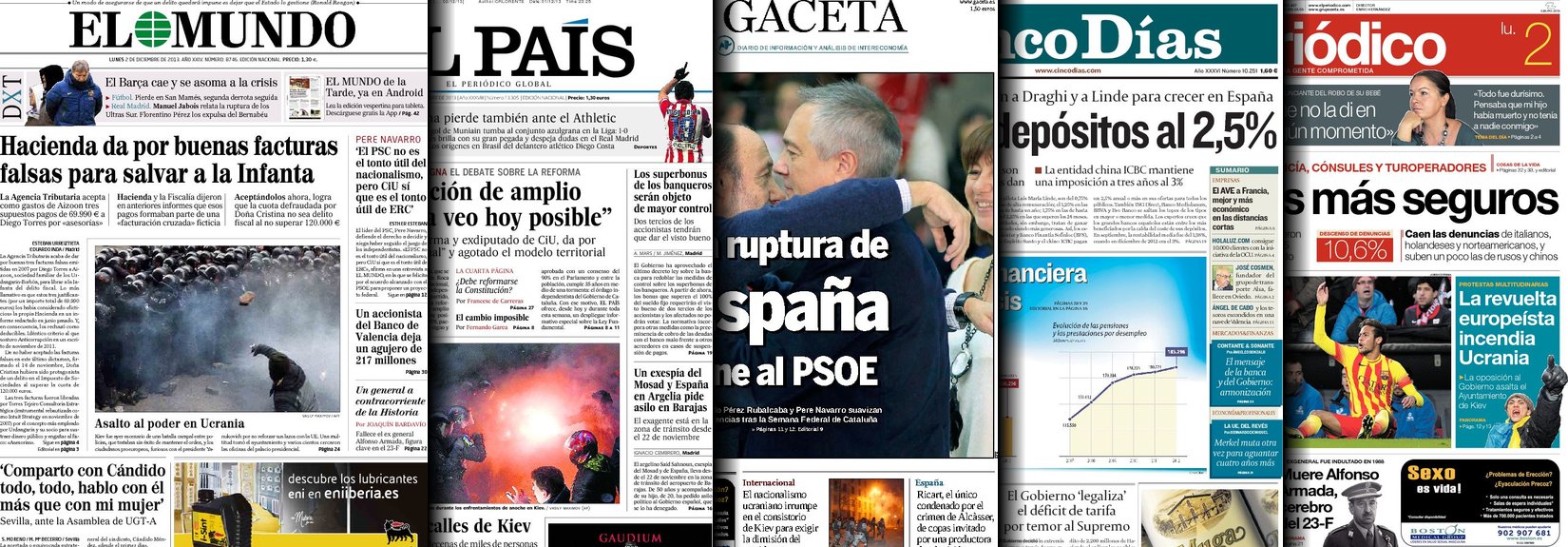 Portadas de los diarios El Mundo, El País, ABC, La Razón, La Vanguardia, La Gaceta, El Periódico, Cinco Días, El Economista, Expansión, Marca, As, Mundo Deportivo y Sport.