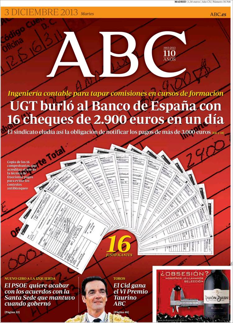 "UGT burló al banco de España con 16 cheques de 2.900 euros en un día"