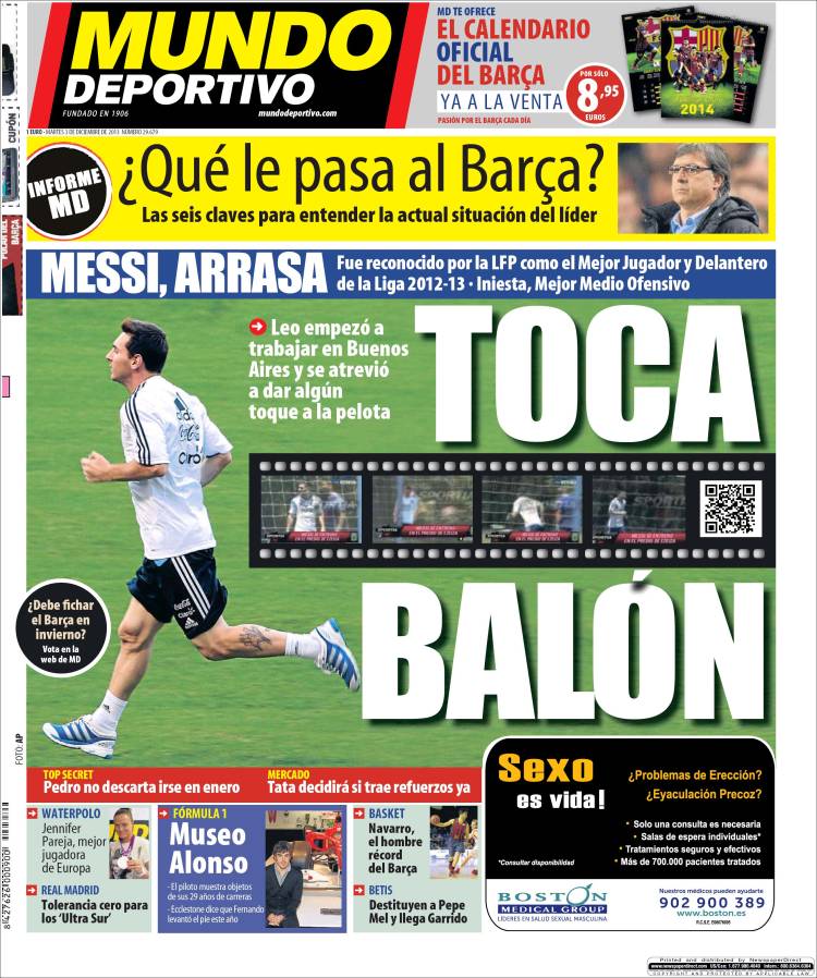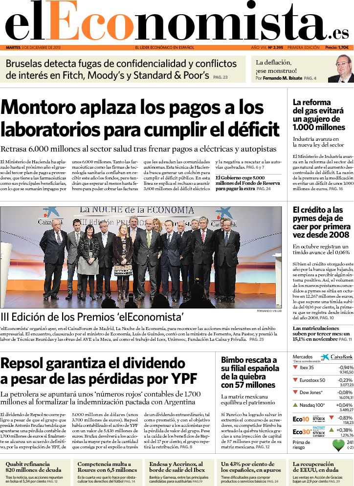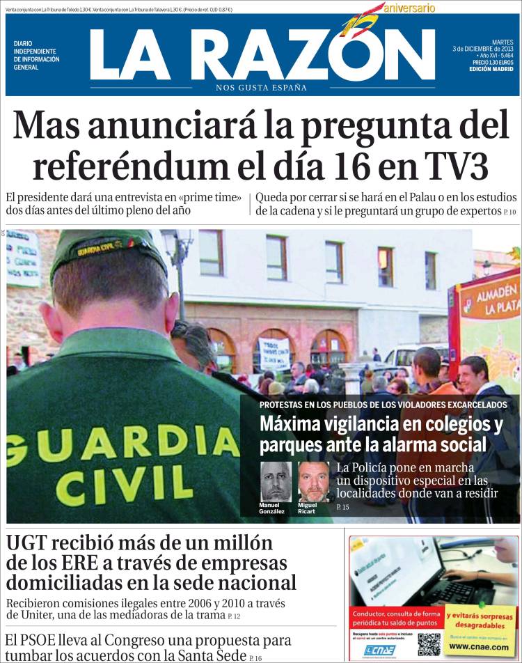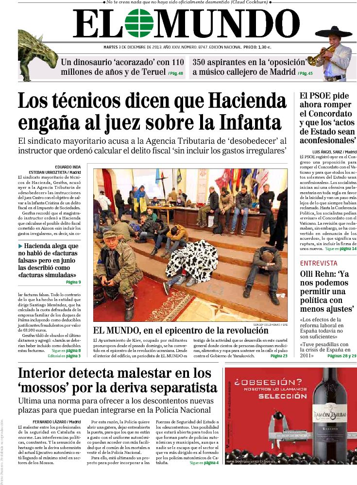 Portadas de los diarios El Mundo, El País, ABC, La Razón, La Vanguardia, La Gaceta, El Periódico, Cinco Días, El Economista, Expansión, Marca, As, Mundo Deportivo y Sport.
