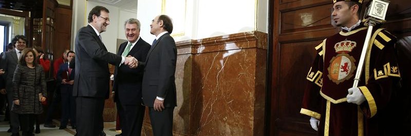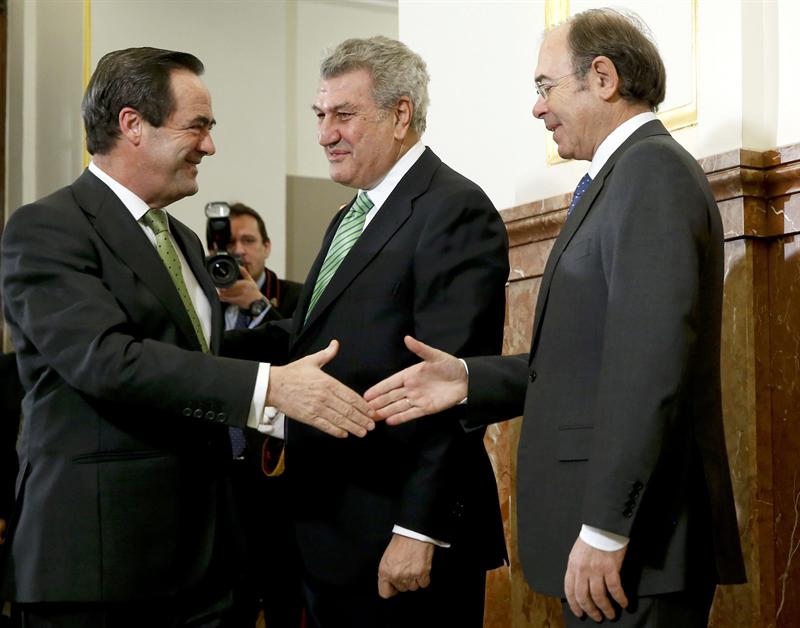 La ministra de Fomento, Ana Pastor, saluda al presidente del Congreso, Jesús Posadas