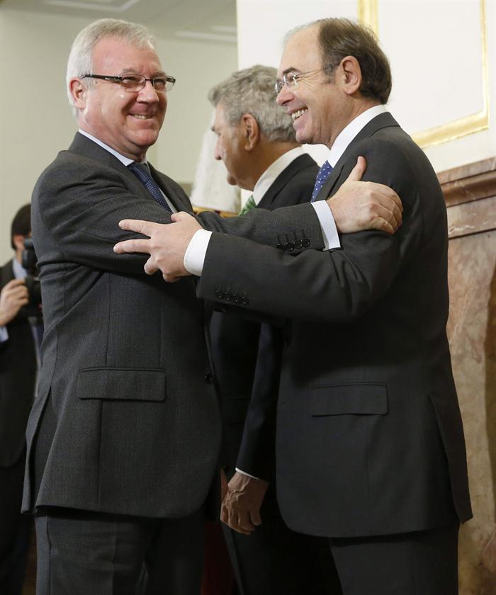 La alcaldesa de Madrid, Ana Botella, saluda al presidente del Senado, Pío García Escudero