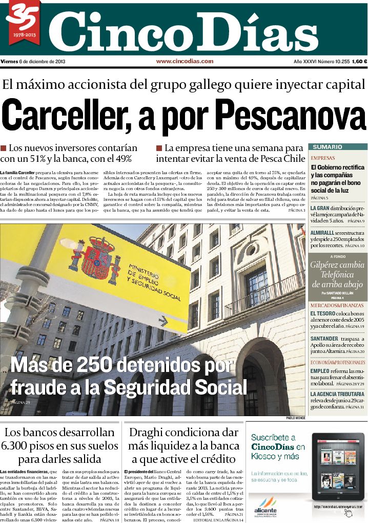 "Carceller, a por Pescanova", "Más de 250 detenidos por fraude a la Seguridad Social"