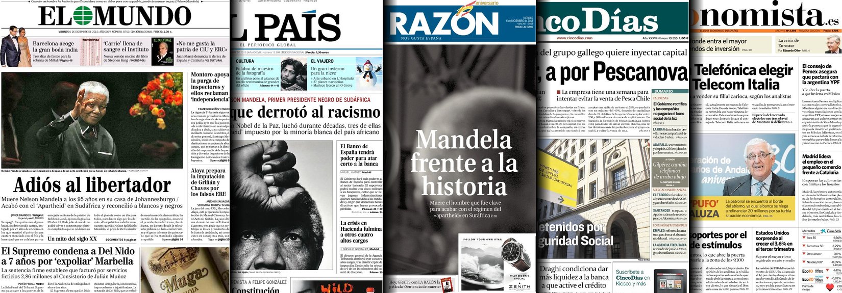 Portadas de los diarios El País, ABC, La Razón, As, Cinco Días, El Periódico, El Economista y La Vanguardia.