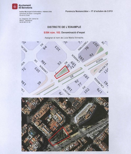 Ha recordado que la propuesta ha sido formulada por la Ponencia del Nomenclator, formada entre otros por 4 de los 5 tenientes de alcalde, y presidida por el teniente de alcalde de Cultura, Jaume Ciurana, por lo que, es evidente que es una decisión de Gobierno. Ya se ha dado traslado de esta iniciativa al distrito del Eixample para que avale la propuesta de dar el nombre de Xirinachs a unos jardines situados entre la Avenida Roma y las calles Rocafort y Mallorca.
