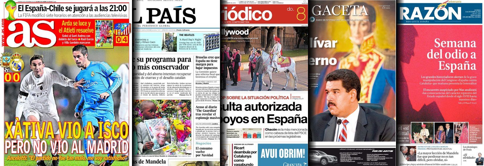 Portadas de los diarios El Mundo, El País, ABC, La Razón, La Gaceta, La Vanguardia, El Periódico, Marca, As, Mundo Deportivo y Sport.