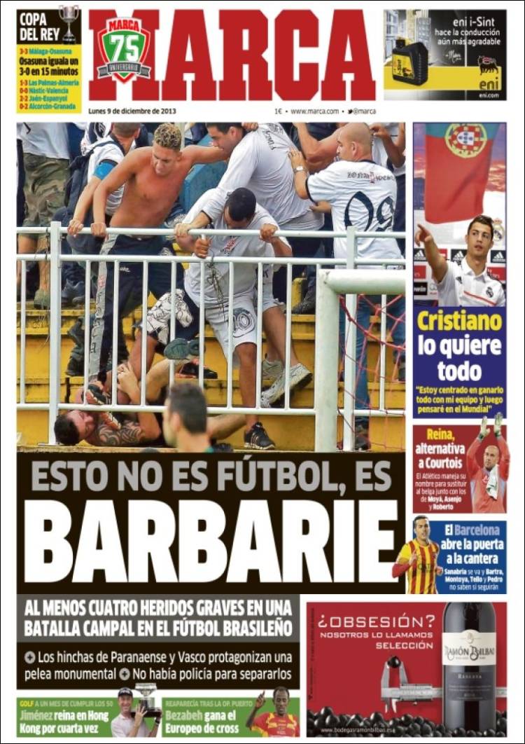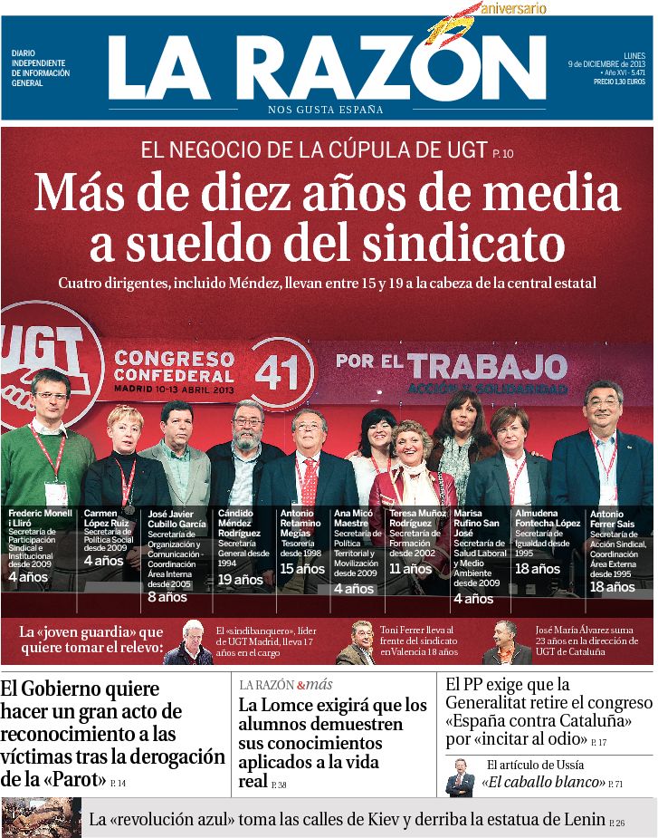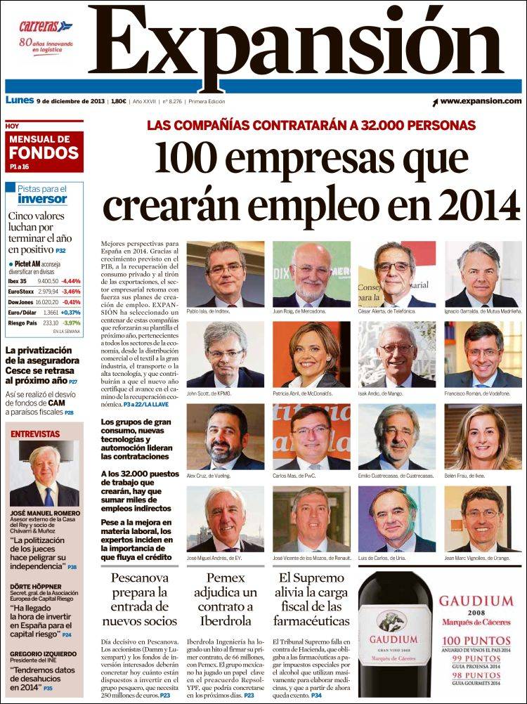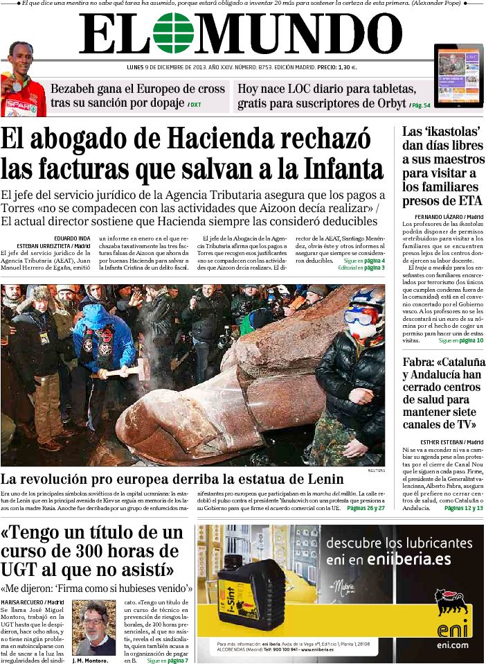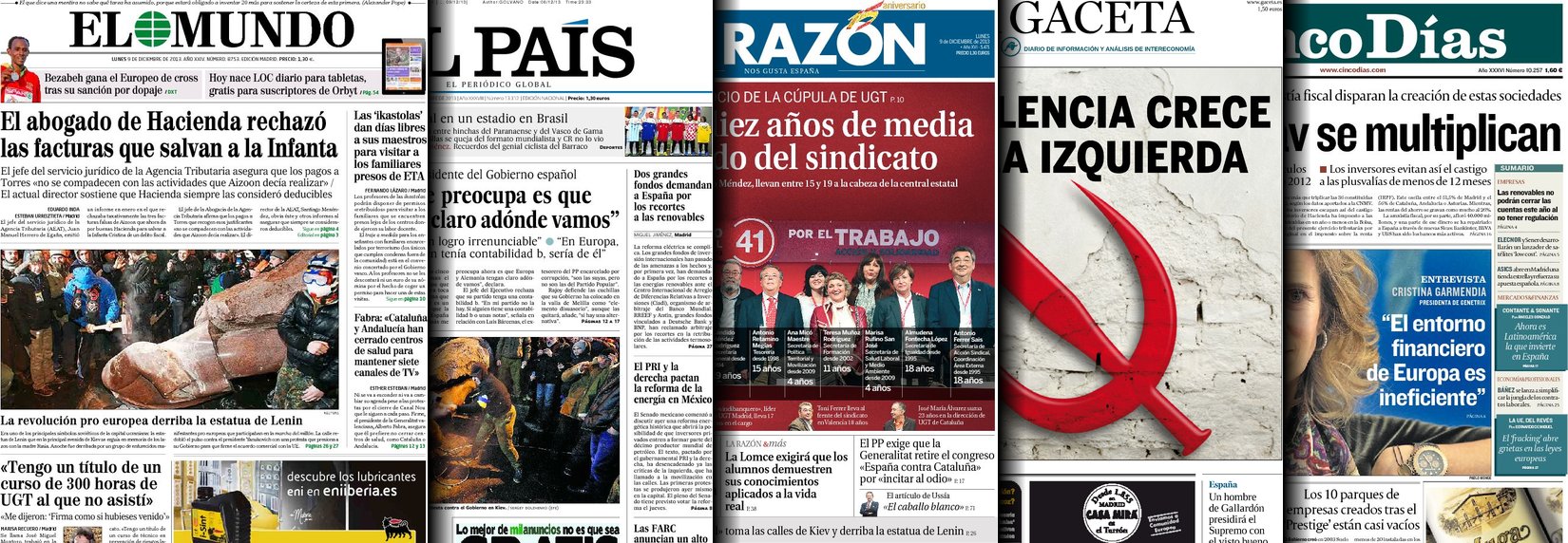 Portadas de los diarios El Mundo, El País, ABC, La Razón, La Vanguardia, La Gaceta, El Periódico, Cinco Días, El Economista, Expansión, Marca, As, Mundo Deportivo y Sport.
