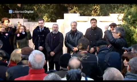 Miembros del PSOE como Óscar López y Tomás Gómez, y de UGT como Cándido Méndez o José Ricardo Martínez han terminado el acto de homenaje por el 88 aniversario de la muerte de Pablo Iglesias cantando la 'Internacional'.