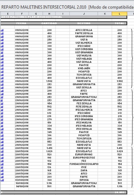 Recuérdese que el cargo de dichos maletines no fue costeado por UGT sino que fue consignado por esta a subvenciones de la Junta. En el año 2010, UGT A adquirió 26.000 mil maletines de ref. 10SI564 a Carpetas Abadías, para servir de recipiente en la entrega del material de formación del Plan de Formación Intersectorial de UGT-A, por un importe de 291.200€ de base imponible, IVA no incluido.
