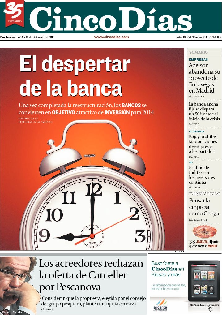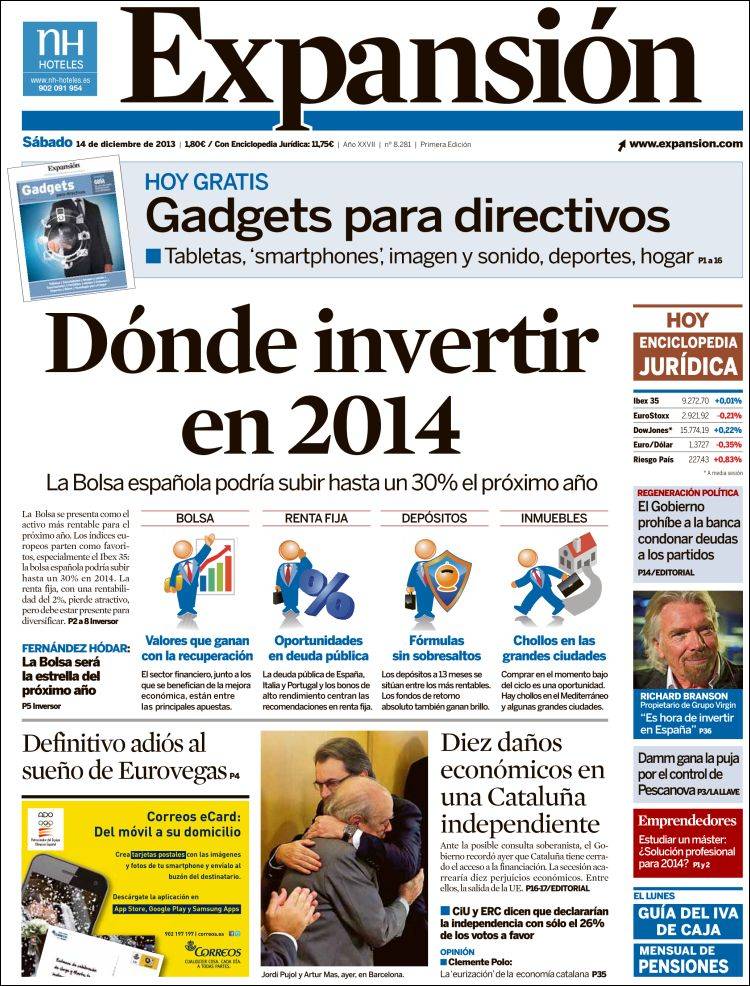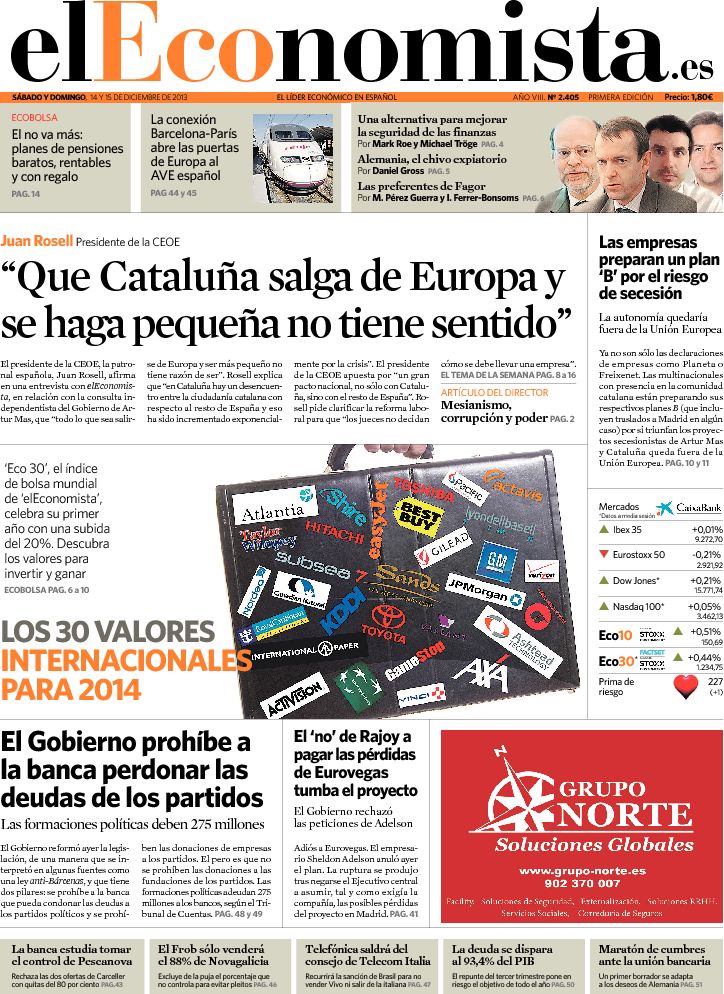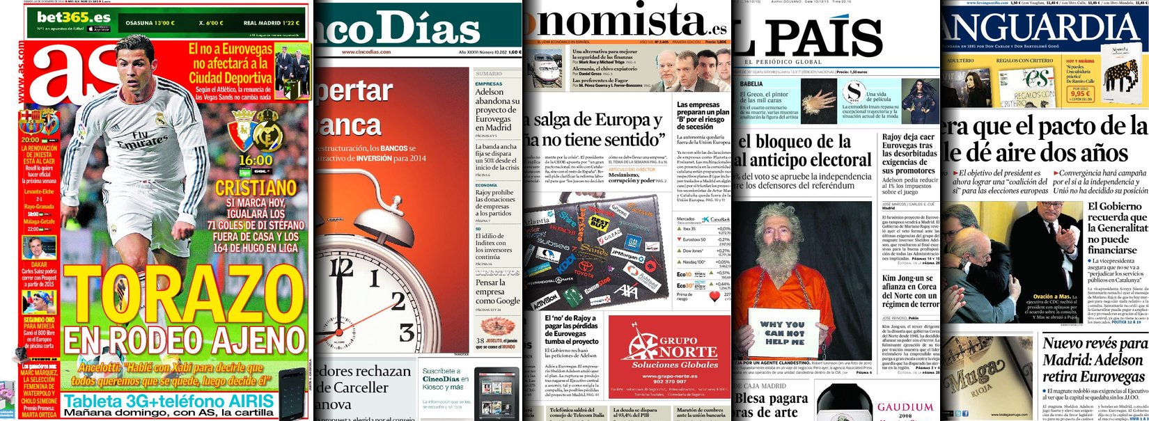 Portadas de los diarios El País, ABC, As, Cinco Días, El Economista y La Vanguardia.