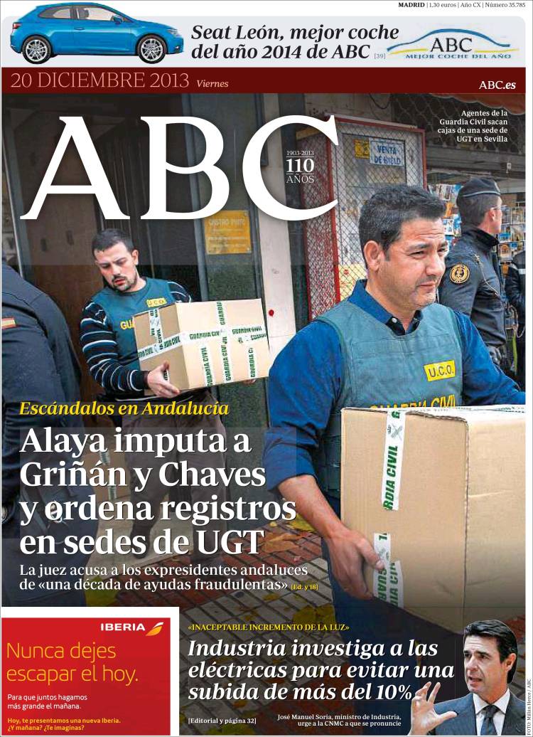 "Alaya imputa a Griñán y Chaves y ordena registros en sedes de UGT"