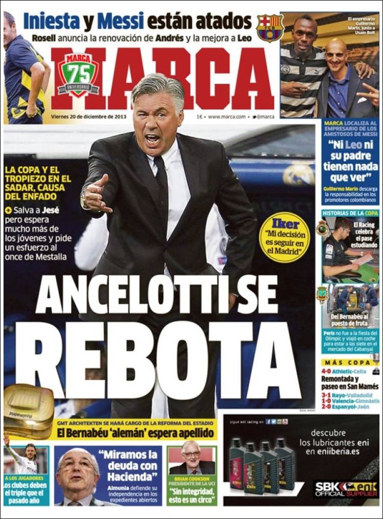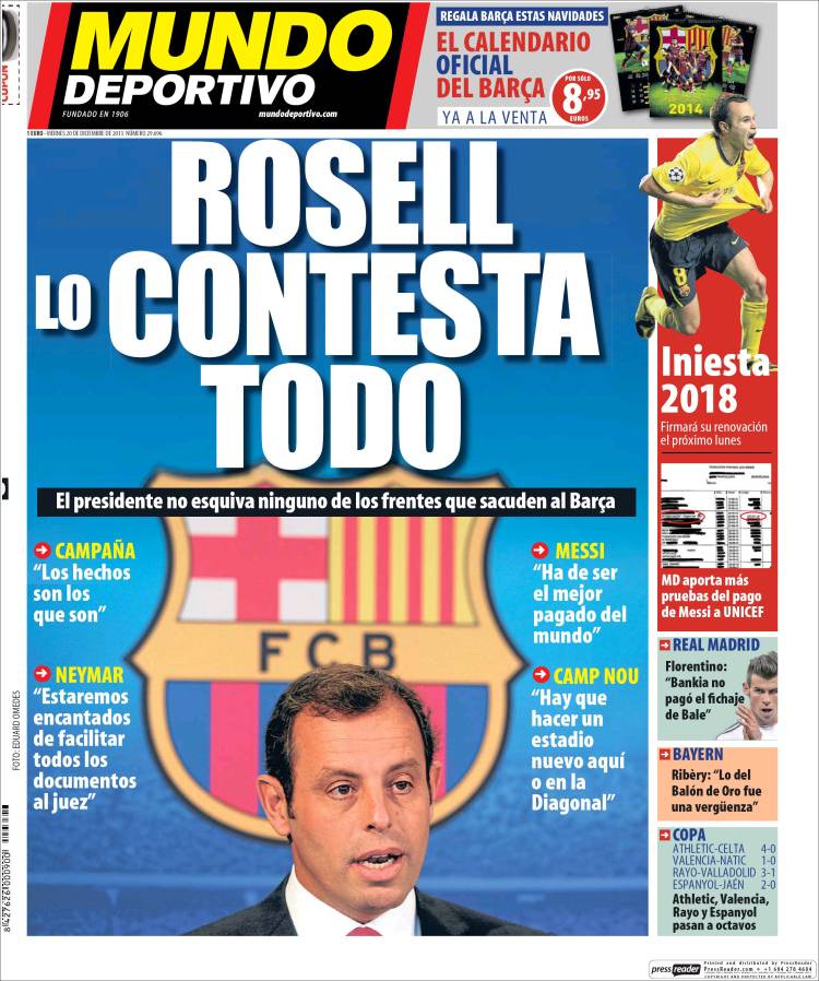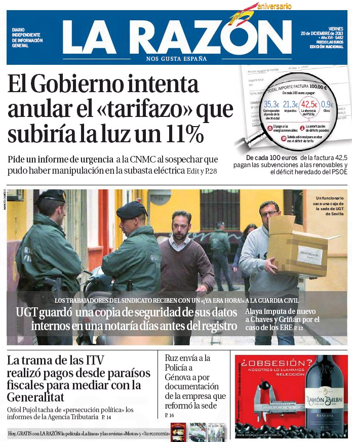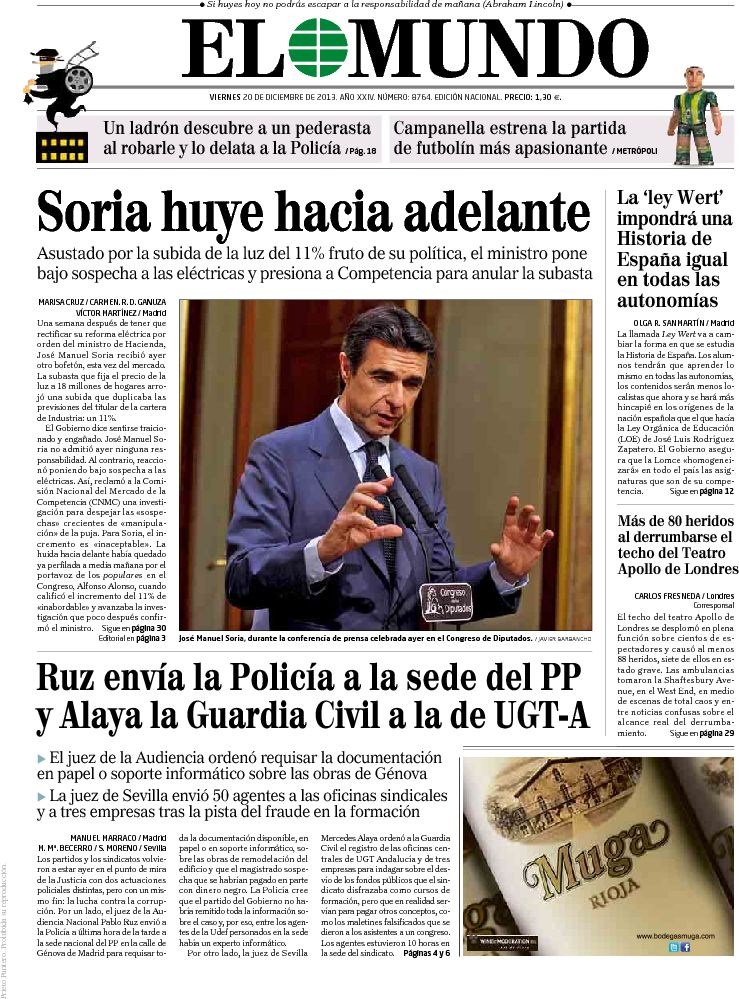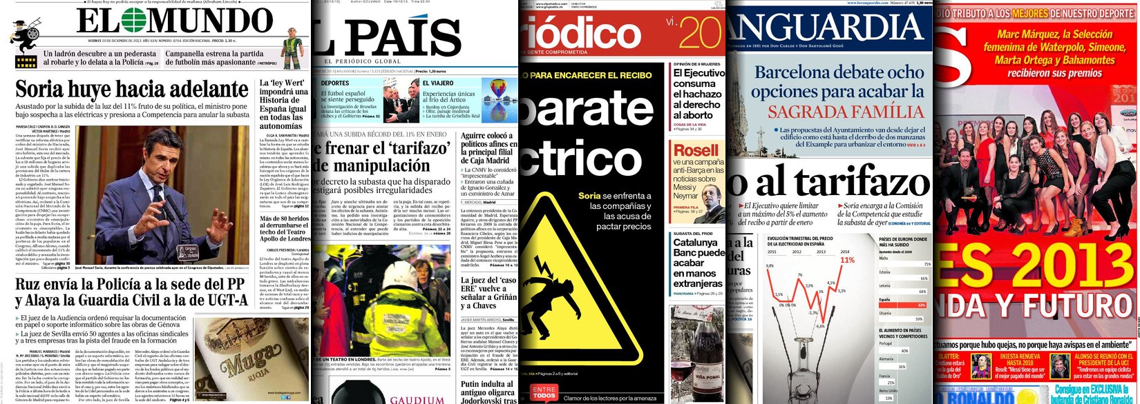 Portadas de los diarios El Mundo, El País, ABC, La Razón, La Vanguardia, La Gaceta, El Periódico, Cinco Días, El Economista, Expansión, Marca, As, Mundo Deportivo y Sport.