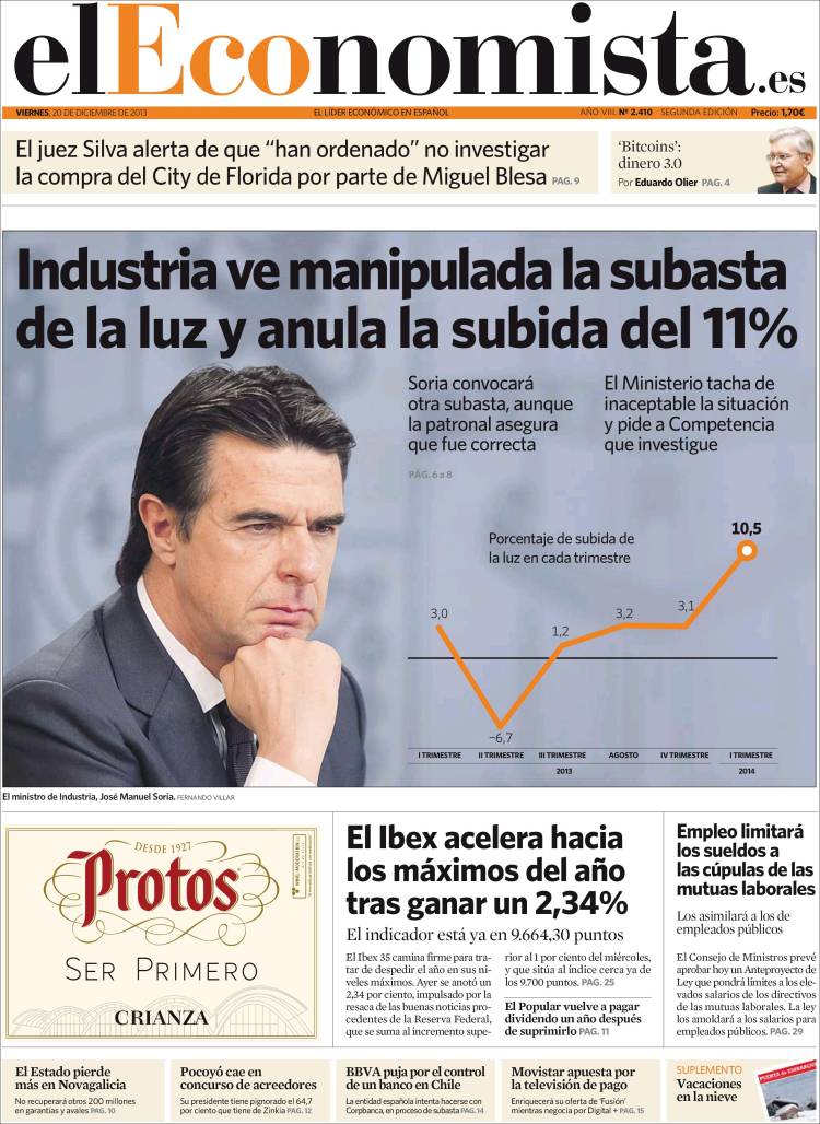 "Industria ve manipulada la subasta de la luz y anula la subida del 11%"
