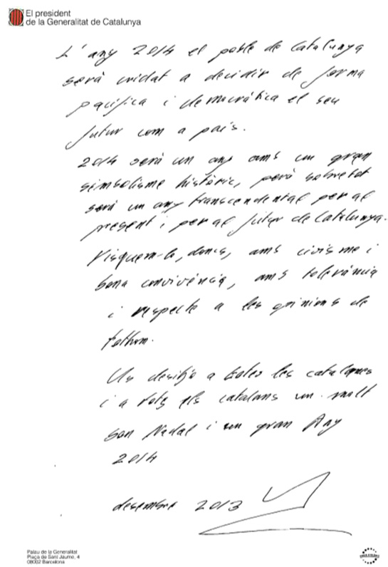 El presidente de la Generalidad concluye con sus mejores deseos a todos los catalanes para una feliz navidad y un "gran año 2014".