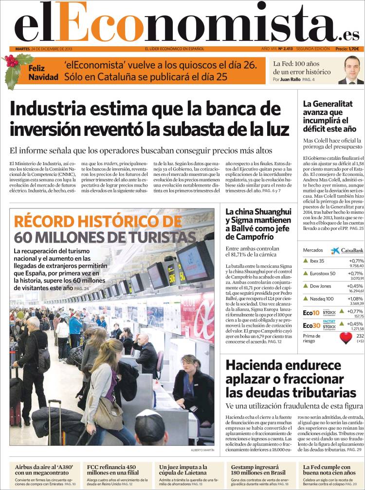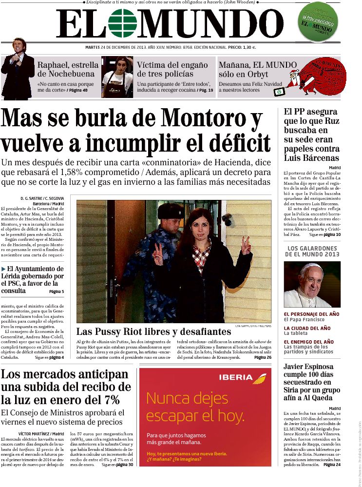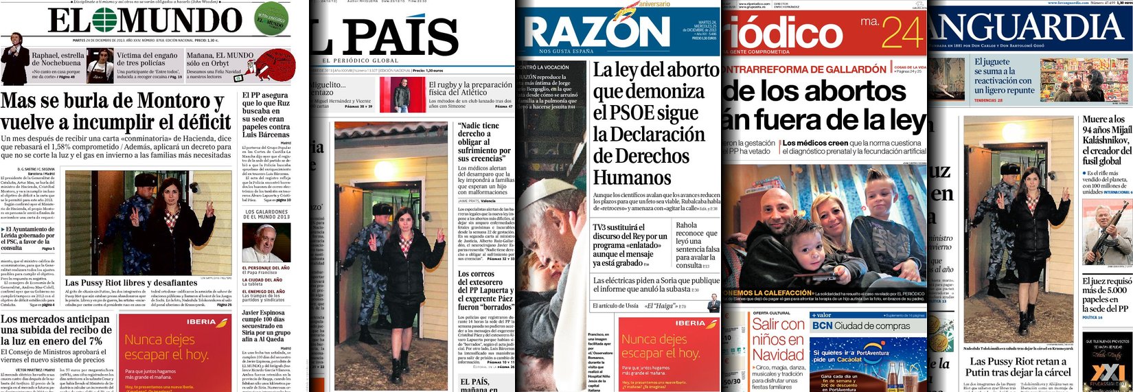 Portadas de los diarios El Mundo, El País, ABC, La Razón, La Vanguardia, La Gaceta, El Periódico, Cinco Días, El Economista, Expansión, Marca, As, Mundo Deportivo y Sport.