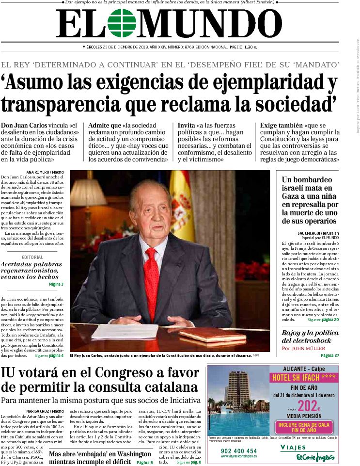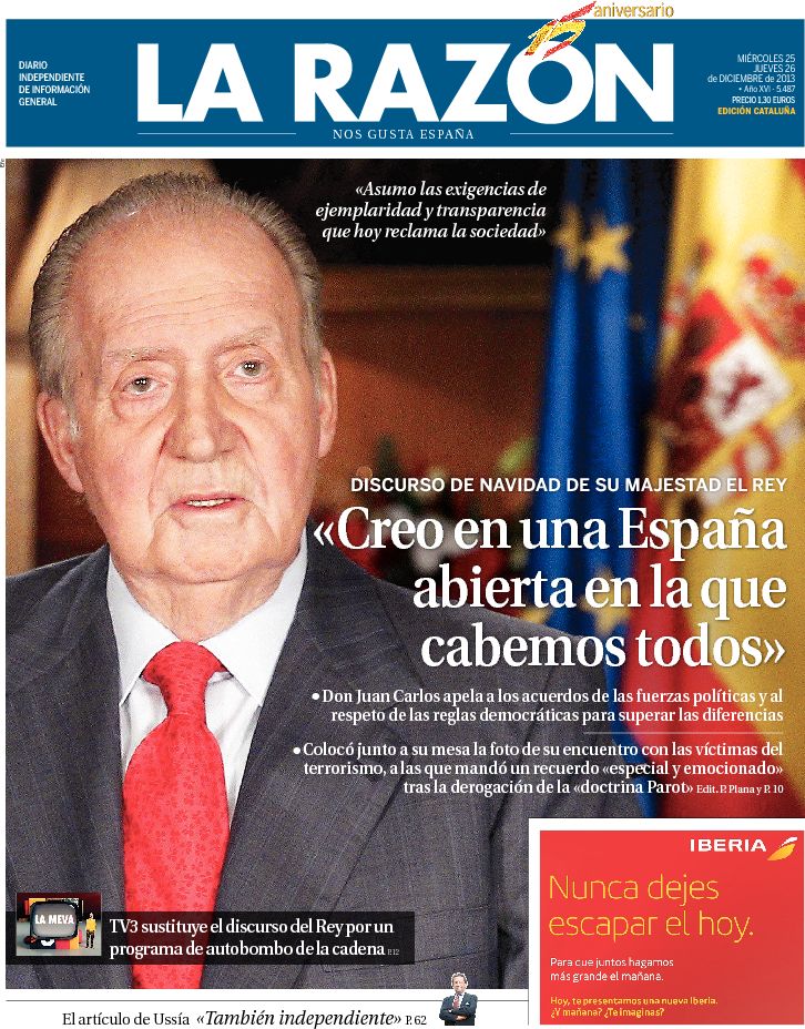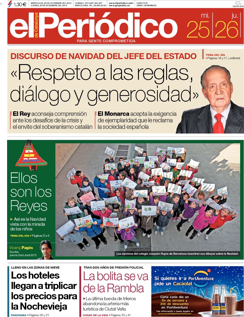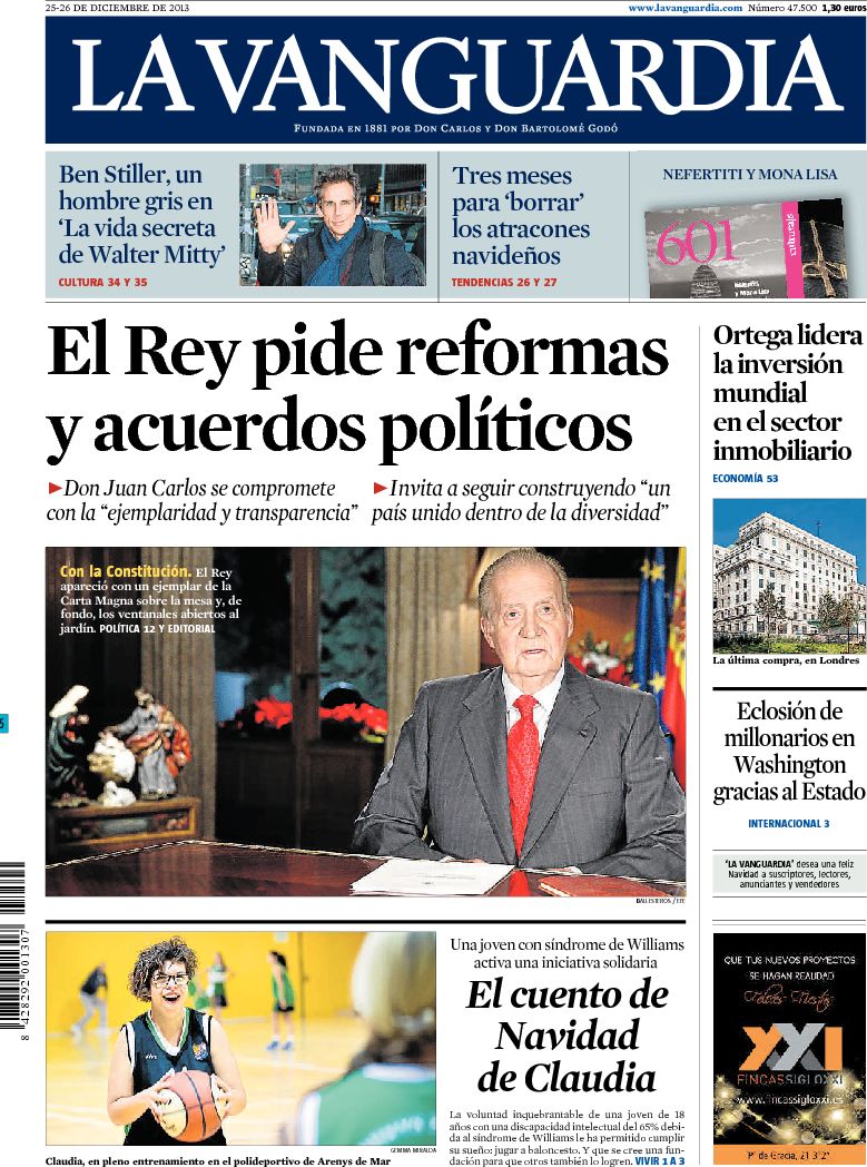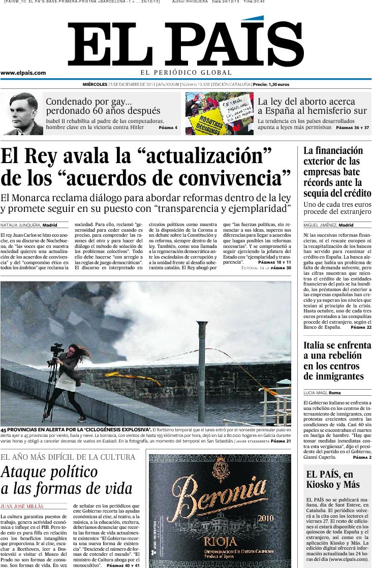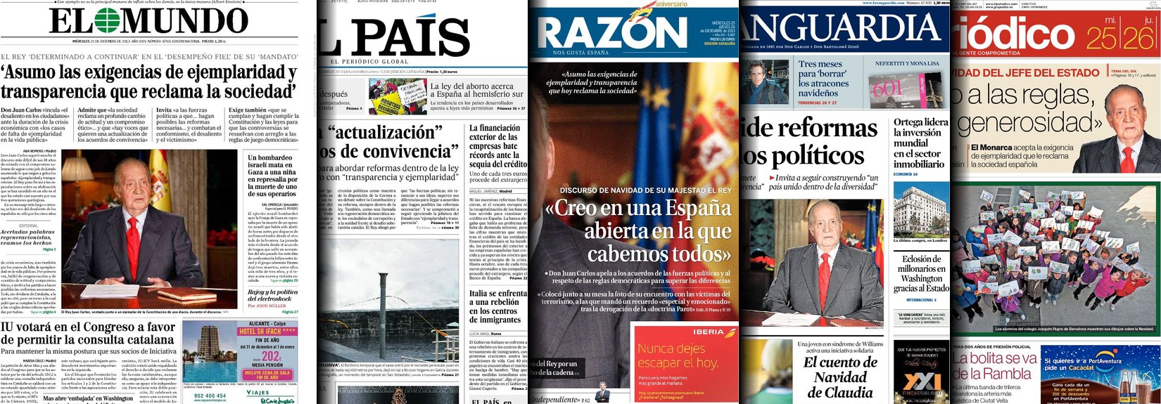 Portadas de los diarios El País, La Razón, El Periódico y La Vanguardia.