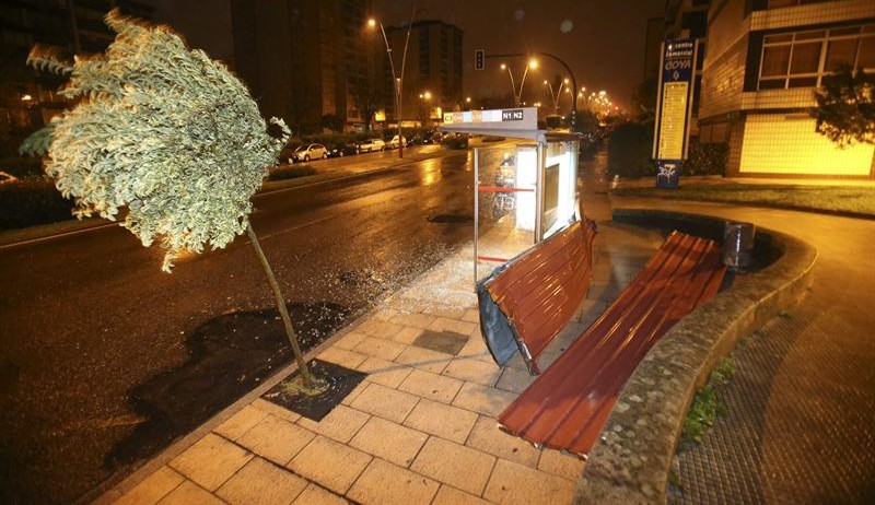 El fuerte viento ha volcado contenedores, tirado árboles, anegado vías, además de provocar apagones en toda Galicia