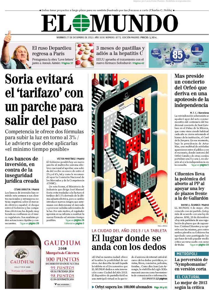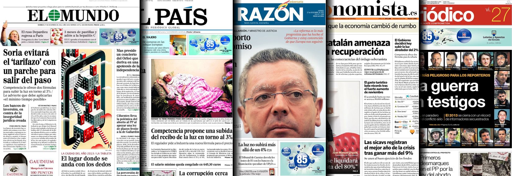 Portadas de los diarios El Mundo, El País, ABC, La Razón, La Vanguardia, El Periódico, Cinco Días, El Economista, Expansión, Marca, As, Mundo Deportivo y Sport.