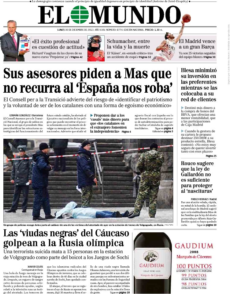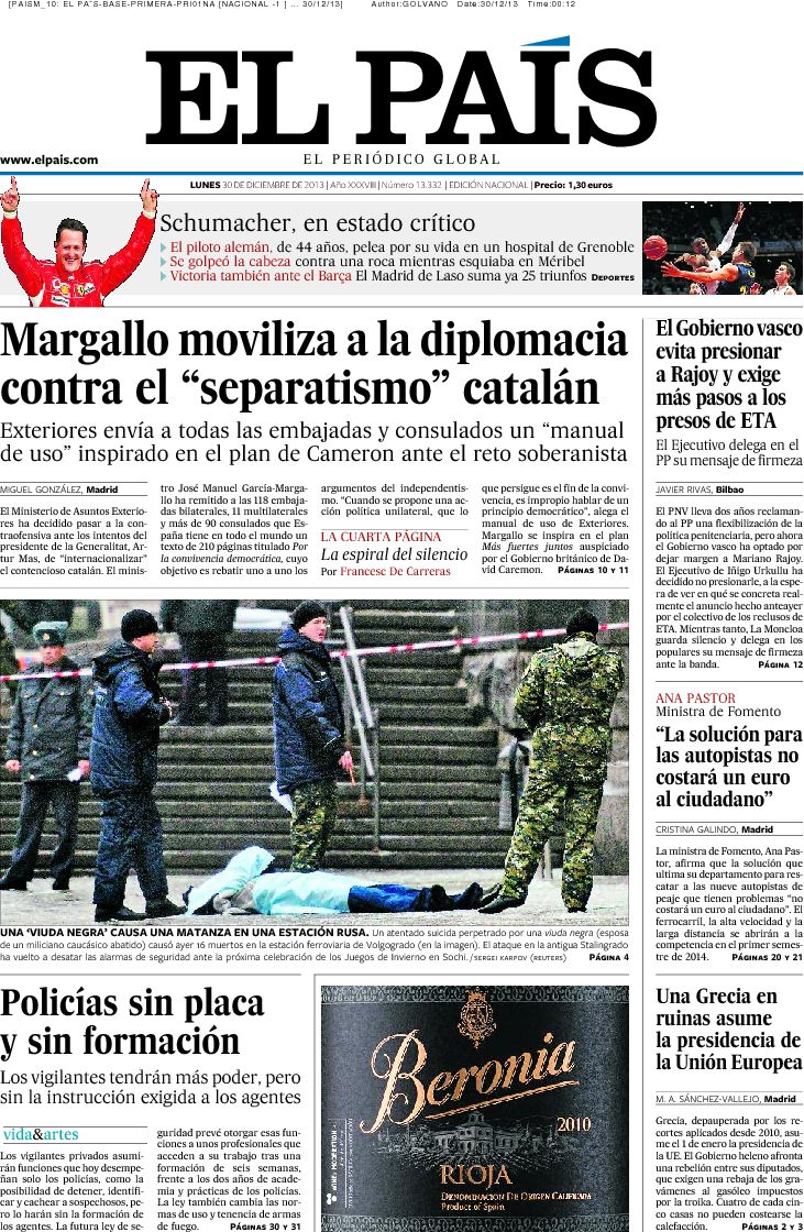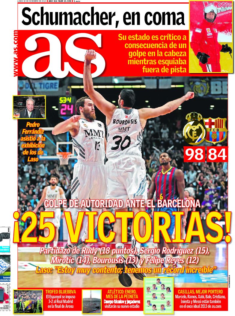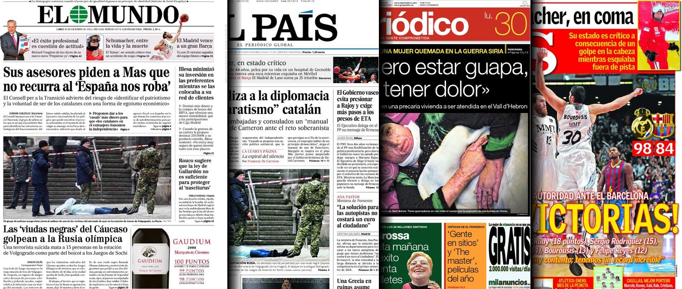 Portadas de los diarios El País, ABC, As, El Periódico y La Vanguardia.