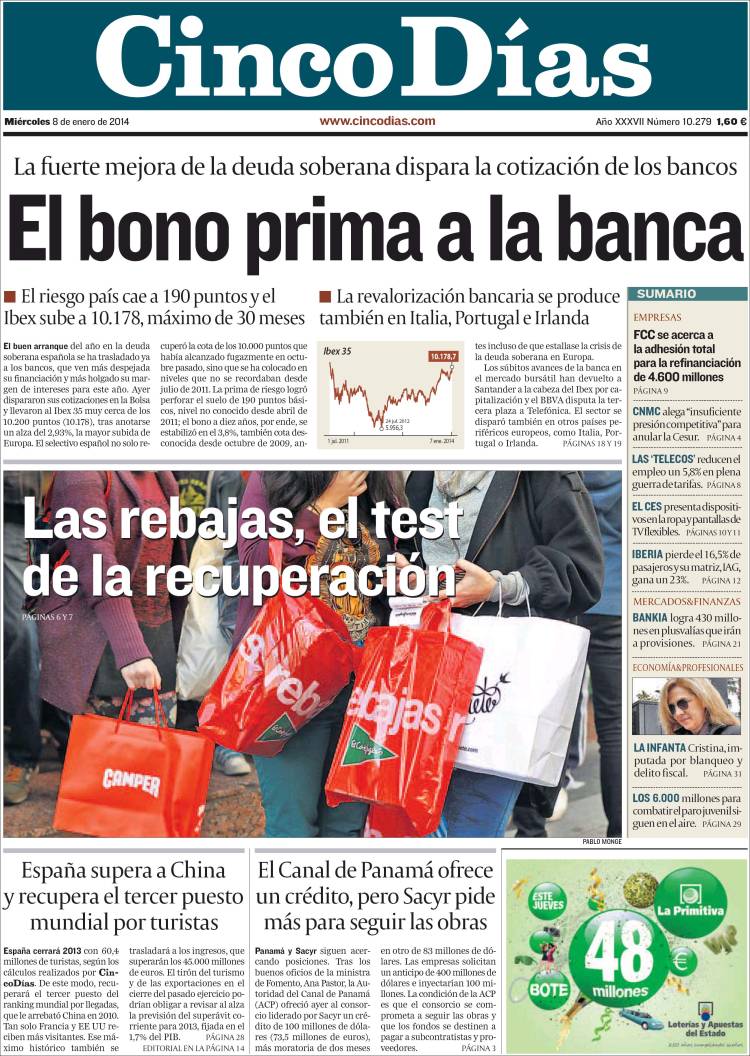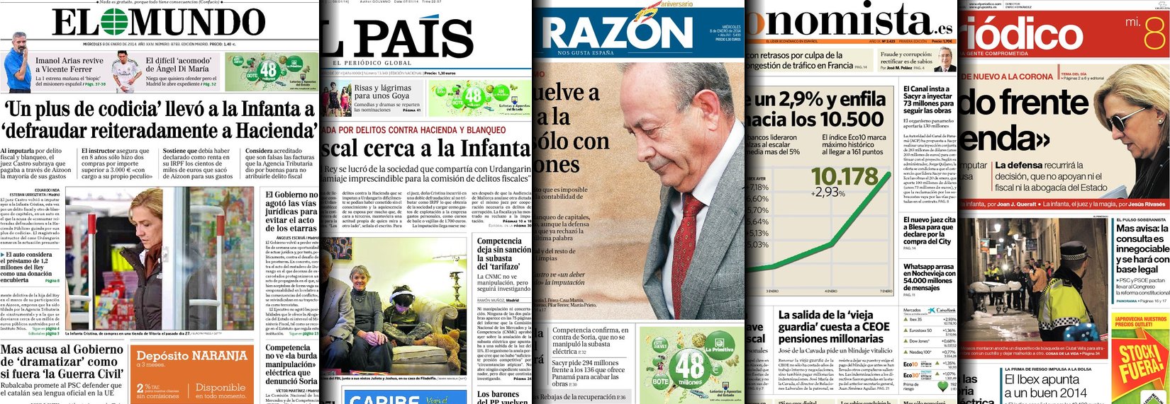 Portadas de los diarios El Mundo, El País, ABC, La Razón, La Vanguardia, El Periódico, Cinco Días, El Economista, Expansión, Marca, As, Mundo Deportivo y Sport.