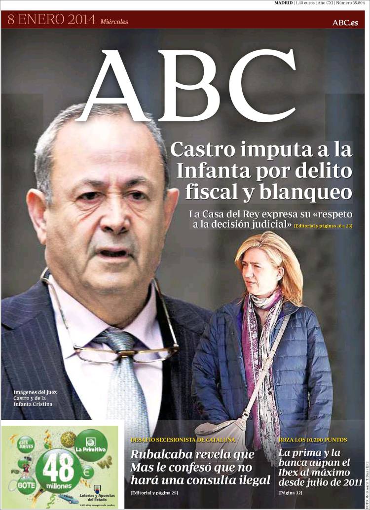 "Castro imputa a la Infanta por delito fiscal y blanqueo"