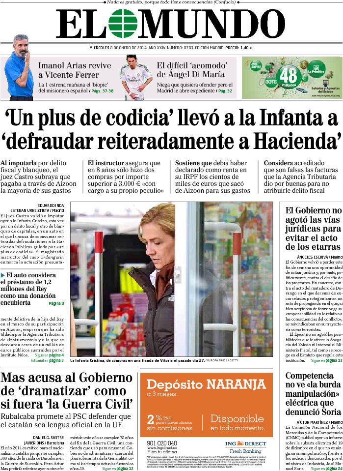 " 'Un plus de codicia' llevó a la Infanta a 'defraudar reiteradamente a Hacienda' "