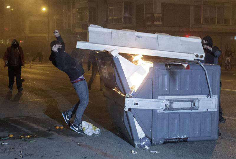 Según informa EFE los manifestantes han quemado media docena de contenedores y han arrojado piedras y adoquines a la Policía, además de ocasionar daños en mobiliario urbano y en dos sucursales bancarias, del BBVA y Caja3.