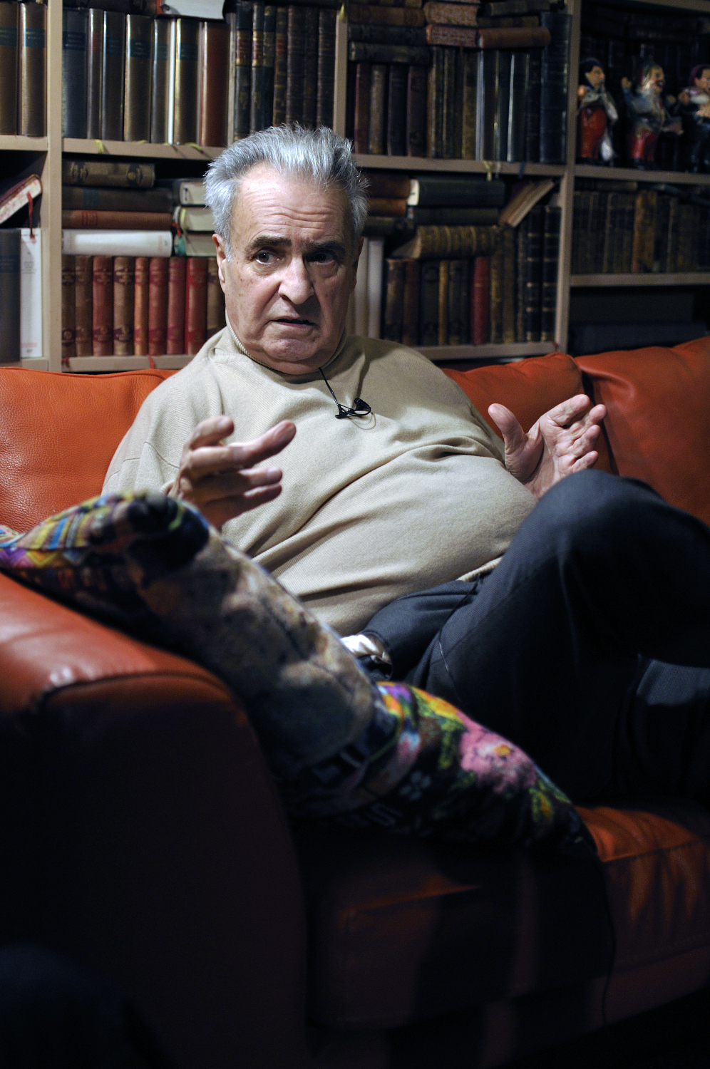 Yo no supe que era judío hasta los 14 ó 15 años. Yo vivía con mi madre y con mi abuelo, mi padre murió a consecuencia de la Guerra Civil. Mi abuelo es ese del retrato de ahí [se gira para señalarlo] que era judío de Cracovia, mi abuela también. Comíamos los cuatro juntos y cuando mi madre y mi abuelo querían hablar de cosas que no tenían por qué enterarse los pequeños hablaban una lengua extraña que no entendíamos nada. Y creíamos que era el polaco, y en realidad era el Yiddish. Mi hermano, mi pobre hermano Fernando asesinado por ETA, me dijo: "oye, que debemos ser judíos, porque he leído en un libro de André Maurois, que es el pseudónimo de su verdadero nombre, que es Émile Herzog, y nosotros somos Herzog".