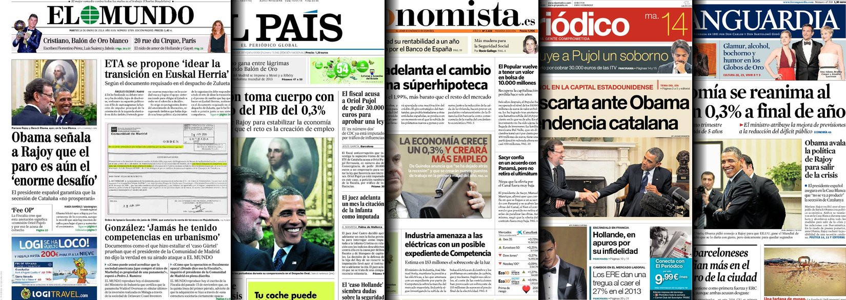 Portadas de los diarios El Mundo, El País, ABC, La Razón, La Vanguardia, El Periódico, Cinco Días, El Economista, Expansión, Marca, As, Mundo Deportivo y Sport.