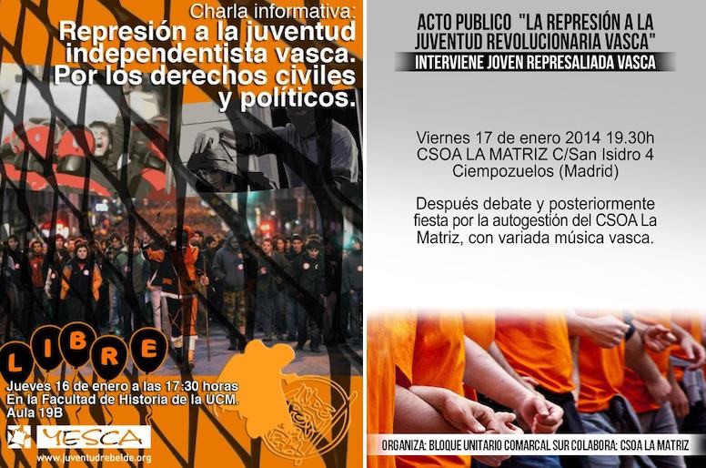 El acto, bajo el título "Represión a la juventud independentista vasca. Por los derechos civiles y políticos", dará comienzo a las 17:30 horas y está organizado por Yesca, las juventudes de Izquierda Castellana, un formación aliada del brazo político de ETA que suele acudir al País Vasco y Navarra a manifestarse junto a los acólitos de ETA cada vez que organizan actos públicos y que suele servir de apoyo a los batasunos cuando necesitan realizar actos en Madrid o las dos Castillas.
