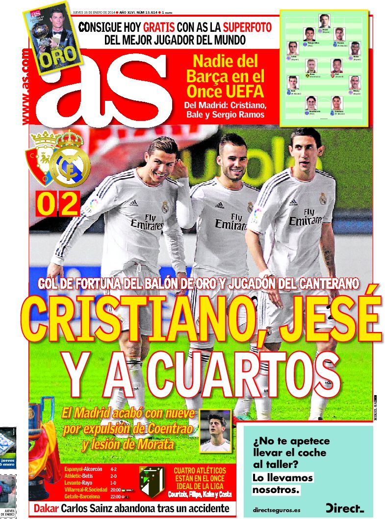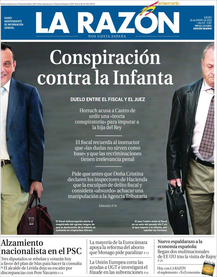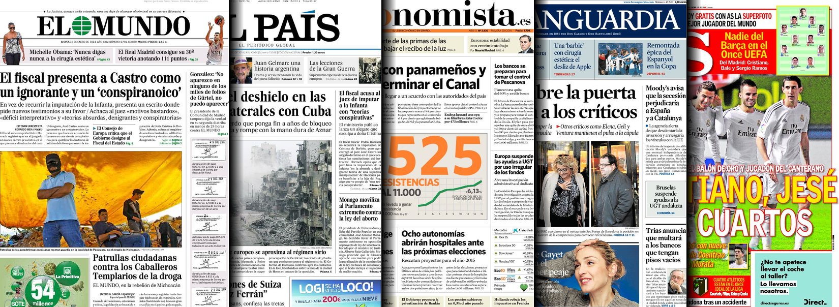 Portadas de los diarios El Mundo, El País, ABC, La Razón, La Vanguardia, El Periódico, Cinco Días, El Economista, Expansión, Marca, As, Mundo Deportivo y Sport.