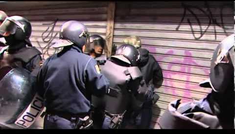 La joven forma parte de un grupo de varios centenares de manifestantes que, previamente, han mantenido escaramuzas con los agentes, a los cuales han increpado poco después de intentar asaltar El Corte Inglés de Callao, que ha sido cerrado inmediatamente.