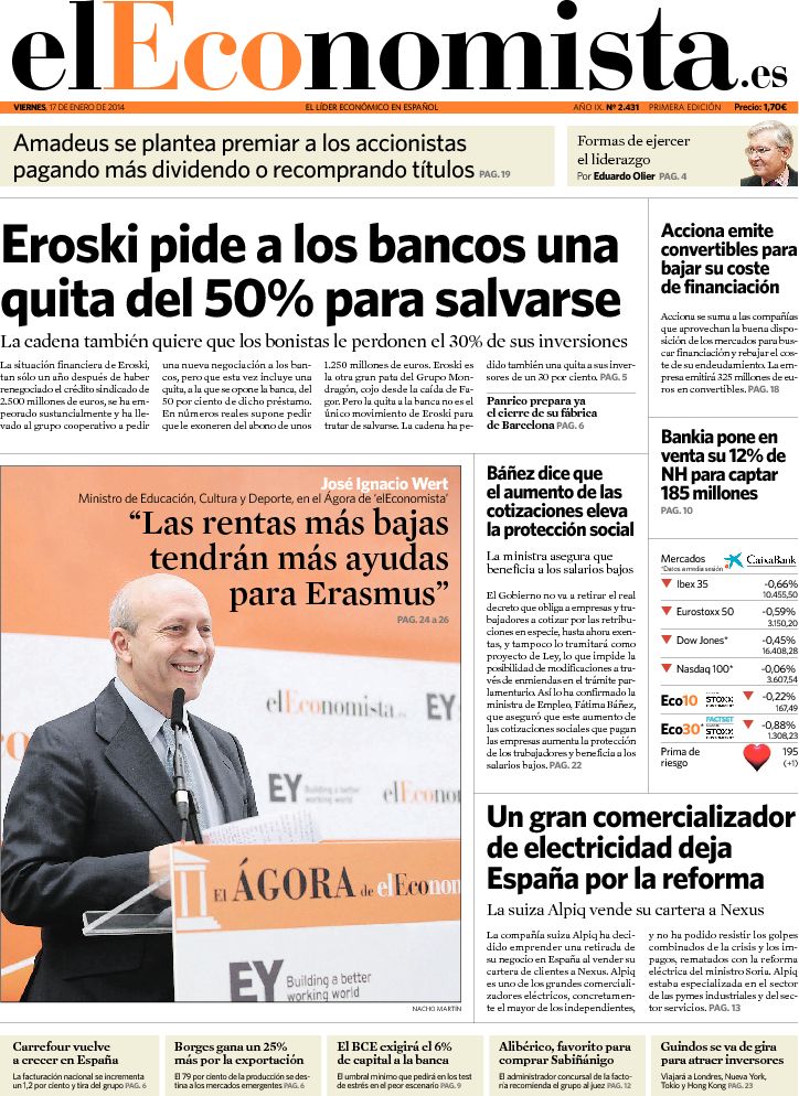 "Eroski pide a los bancos una quita del 50% para salvarse"