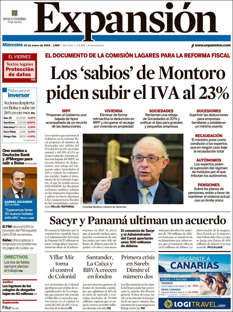 "Los 'sabios' de Montoro piden subir el IVA al 23%"
