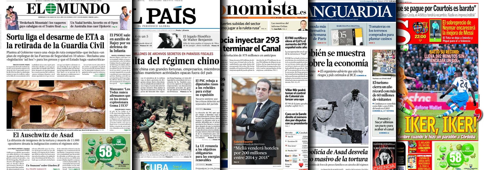 Portadas de los diarios El Mundo, El País, ABC, La Razón, La Vanguardia, El Periódico, Cinco Días, El Economista, Expansión, Marca, As, Mundo Deportivo y Sport.